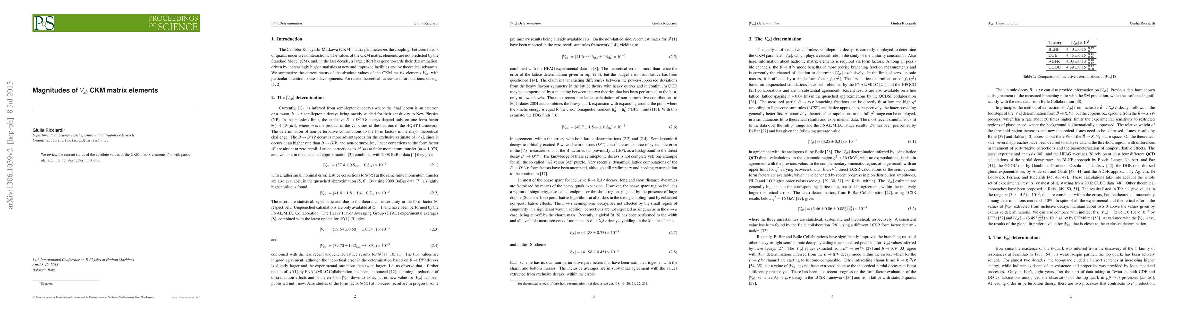 We review the current status of the absolute values of the CKM matrix elements V(xb), with particular attention to latest determinations.