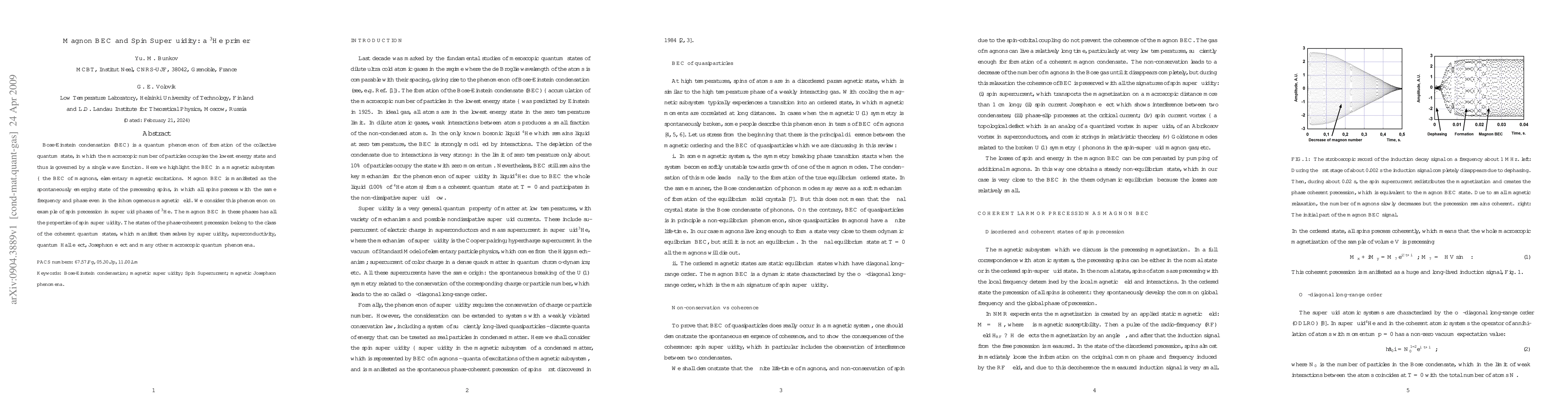 This paper explores the Bose-Einstein condensation (BEC) of magnons in superfluid phases of 3He, where magnon BEC manifests as a phase-coherent precession state of spins, exhibiting properties of spin superfluidity akin to other macroscopic quantum phenomena.