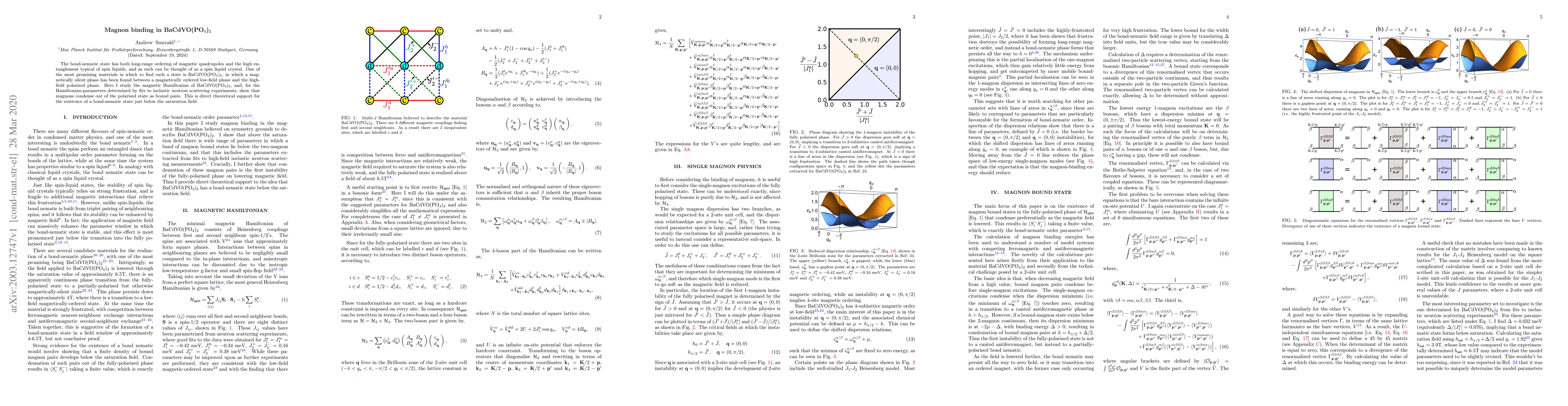 The bond-nematic state has both long-range ordering of magnetic quadrupoles and the high entanglement typical of spin liquids, and as such can be thought of as a spin liquid crystal. One of the most promising materials in which to find such a state is BaCdVO(PO$_4$)$_2$, in which a magnetically silent phase has been found between a magnetically ordered low-field phase and the high-field polarised phase. Here I study the magnetic Hamiltonian of BaCdVO(PO$_4$)$_2$, and, for the Hamiltonian-parameters determined by fits to inelastic neutron scattering experiments, show that magnons condense out of the polarised state as bound pairs. This is direct theoretical support for the existence of a bond-nematic state just below the saturation field.