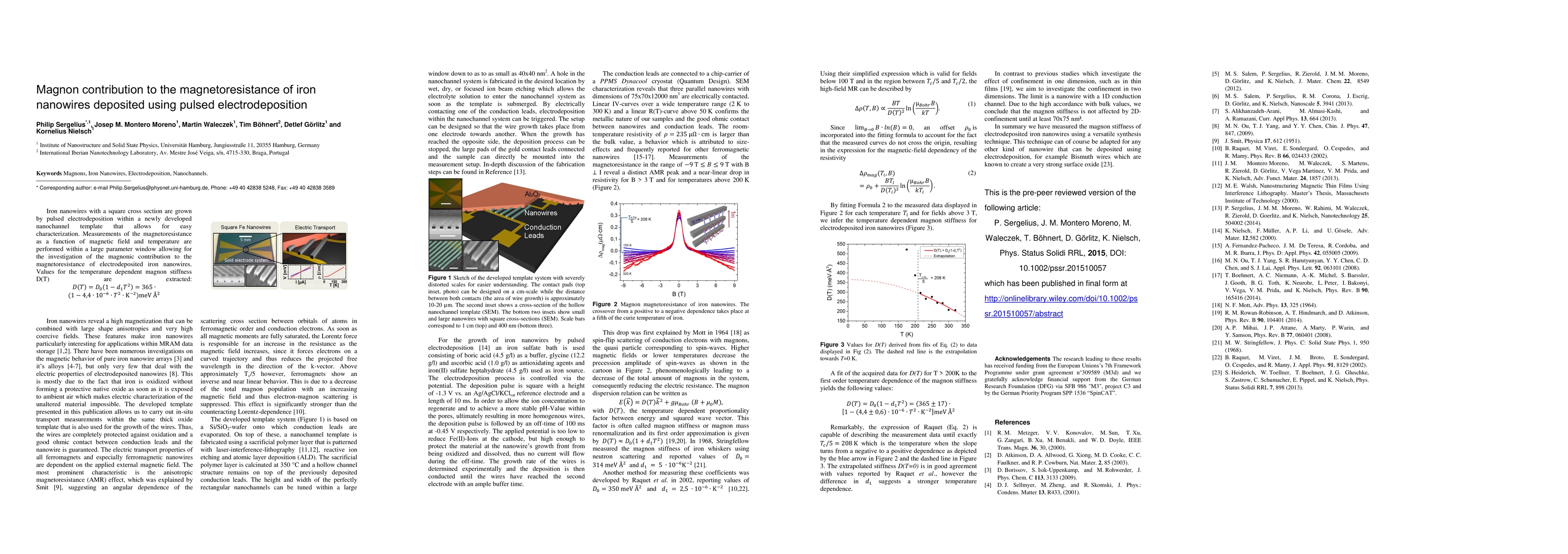 This study investigates the magnetoresistance of iron nanowires deposited via pulsed electrodeposition, focusing on the magnonic contribution. Measurements reveal temperature-dependent magnon stiffness, providing insights into the underlying physics of magnetoresistance in these nanowires.