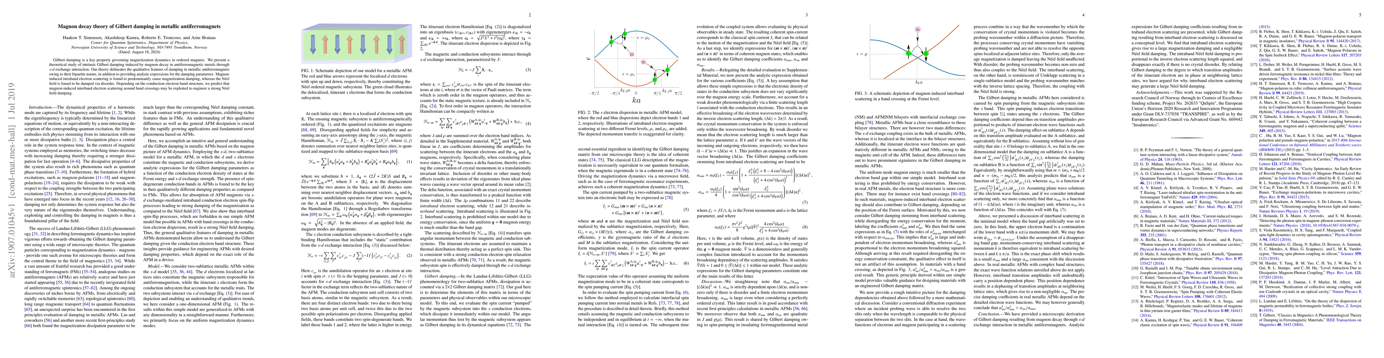 This paper develops a theoretical framework for understanding Gilbert damping in metallic antiferromagnets, attributing it to magnon decay through $s$-$d$ exchange interaction. It highlights that intraband electron scattering by magnons primarily causes magnetization damping, while the N\'eel field damping is influenced by disorder.