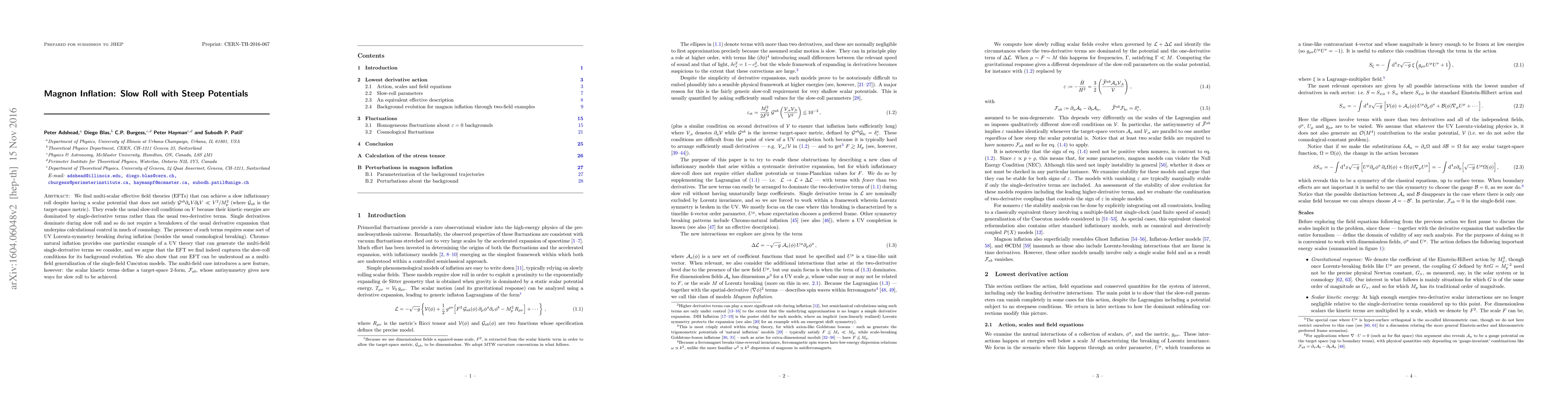 We find multi-scalar effective field theories (EFTs) that can achieve a slow inflationary roll despite having a scalar potential that does not satisfy the usual slow-roll condition (d V)^2 << V^2/Mp^2. They evade the usual slow-roll conditions on $V$ because their kinetic energies are dominated by single-derivative terms rather than the usual two-derivative terms. Single derivatives dominate during slow roll and so do not require a breakdown of the usual derivative expansion that underpins calculational control in much of cosmology. The presence of such terms requires some sort of UV Lorentz-symmetry breaking during inflation (besides the usual cosmological breaking). Chromo-natural inflation provides an example of a UV theory that can generate the multi-field single-derivative terms we consider, and we argue that the EFT we find indeed captures the slow-roll conditions for the background evolution for Chromo-natural inflation. We also show that our EFT can be understood as a multi-field generalization of the single-field Cuscuton models. The multi-field case introduces a new feature, however: the scalar kinetic terms define a target-space 2-form, F_{ab}, whose antisymmetry gives new ways for slow roll to be achieved.