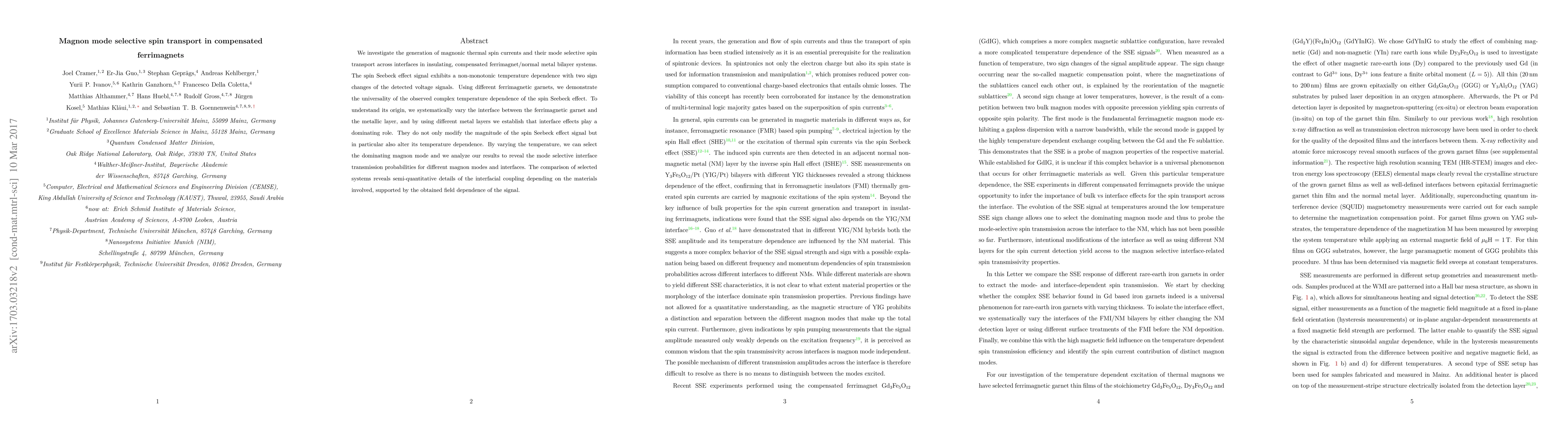 This study explores magnonic thermal spin currents and their mode-selective transport in ferrimagnet/normal metal bilayer systems, revealing complex temperature dependencies and the dominant role of interface effects in altering the spin Seebeck effect. By varying materials and temperatures, researchers identified mode-selective magnon transmission probabilities.