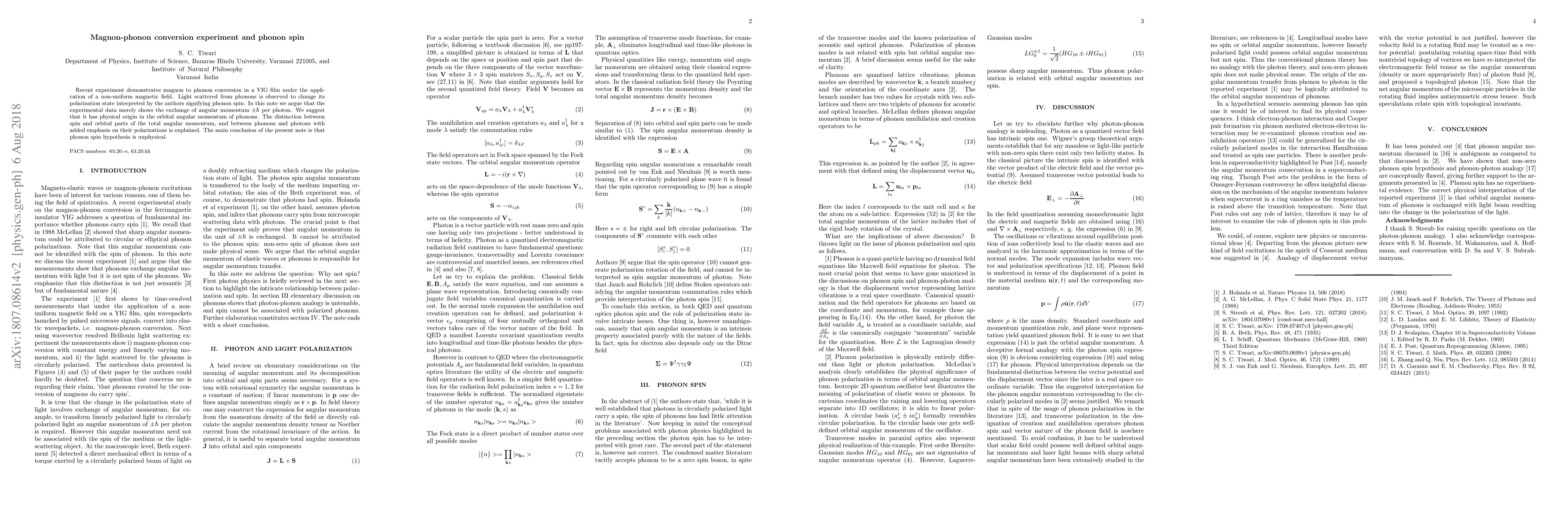 Recent experiment demonstrates magnon to phonon conversion in a YIG film under the application of a non-uniform magnetic field. Light scattered from phonons is observed to change its polarization state interpreted by the authors signifying phonon spin. In this note we argue that the experimental data merely shows the exchange of angular momentum $\pm \hbar$ per photon. We suggest that it has physical origin in the orbital angular momentum of phonons. The distinction between spin and orbital parts of the total angular momentum, and between phonons and photons with added emphasis on their polarizations is explained. The main conclusion of the present note is that phonon spin hypothesis is unphysical.