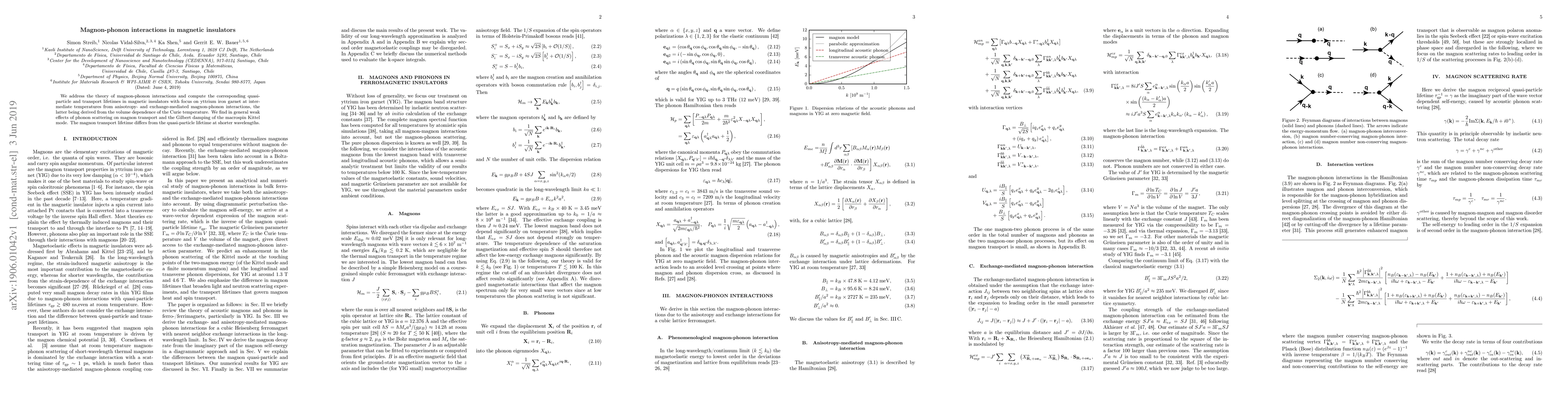 This paper investigates magnon-phonon interactions in magnetic insulators, specifically yttrium iron garnet, finding weak phonon scattering effects on magnon transport and Gilbert damping, with distinct magnon transport and quasi-particle lifetimes at shorter wavelengths.
