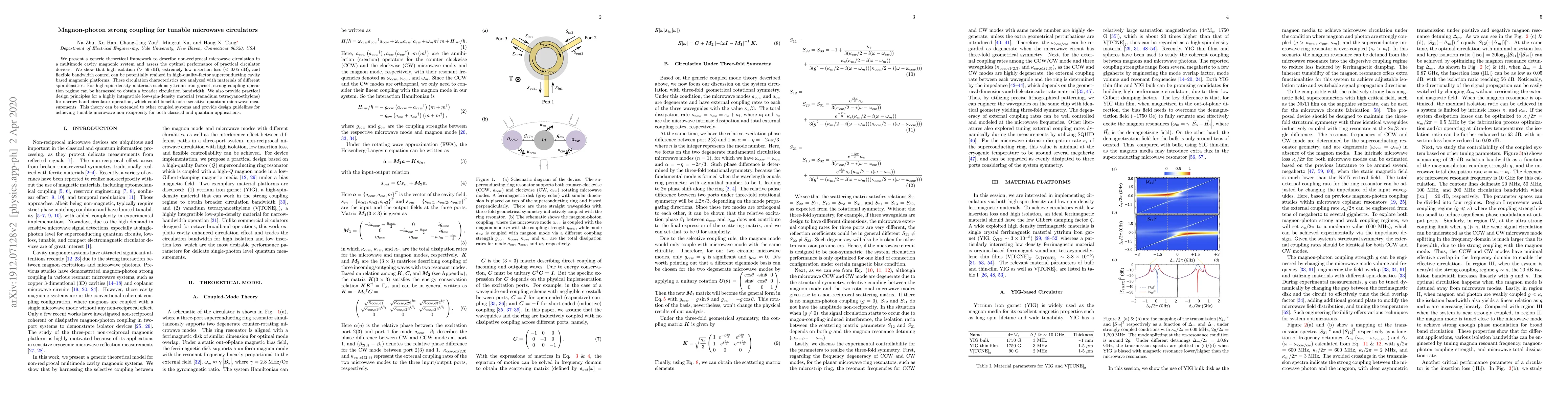 This paper proposes a theoretical framework for tunable microwave circulators using magnon-photon strong coupling in multimode cavity magnonic systems, demonstrating high isolation, low insertion loss, and flexible bandwidth control. It highlights practical design principles for both high-spin and low-spin density materials, offering insights for classical and quantum microwave applications.