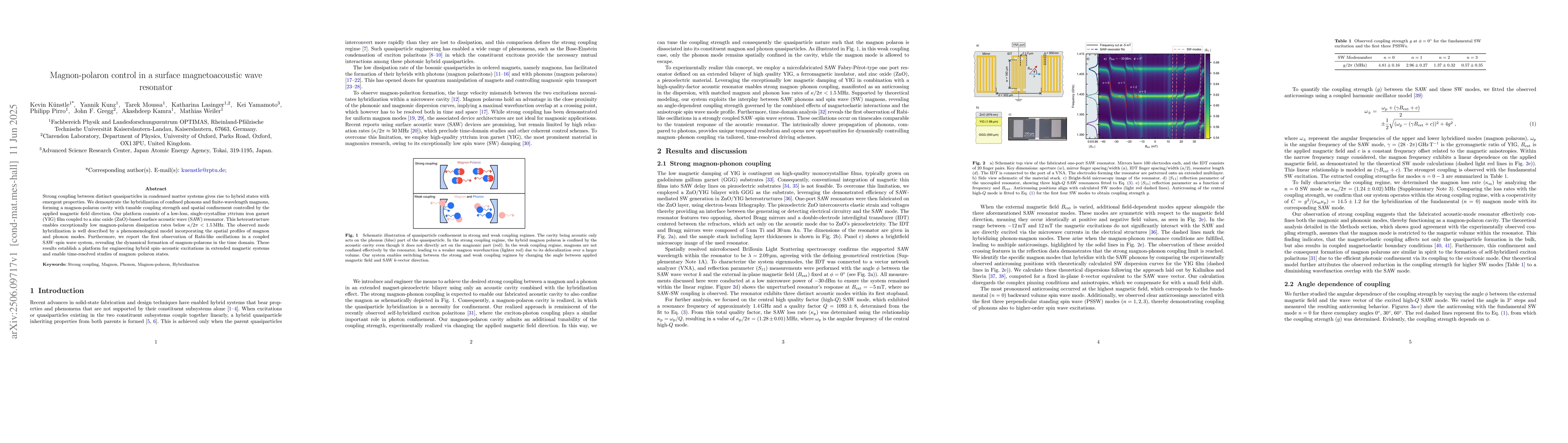 The paper presents a novel method for creating and controlling magnon-polaron hybrid states using a surface magnetoacoustic wave resonator, enabling time-domain studies of these exotic quasiparticles.