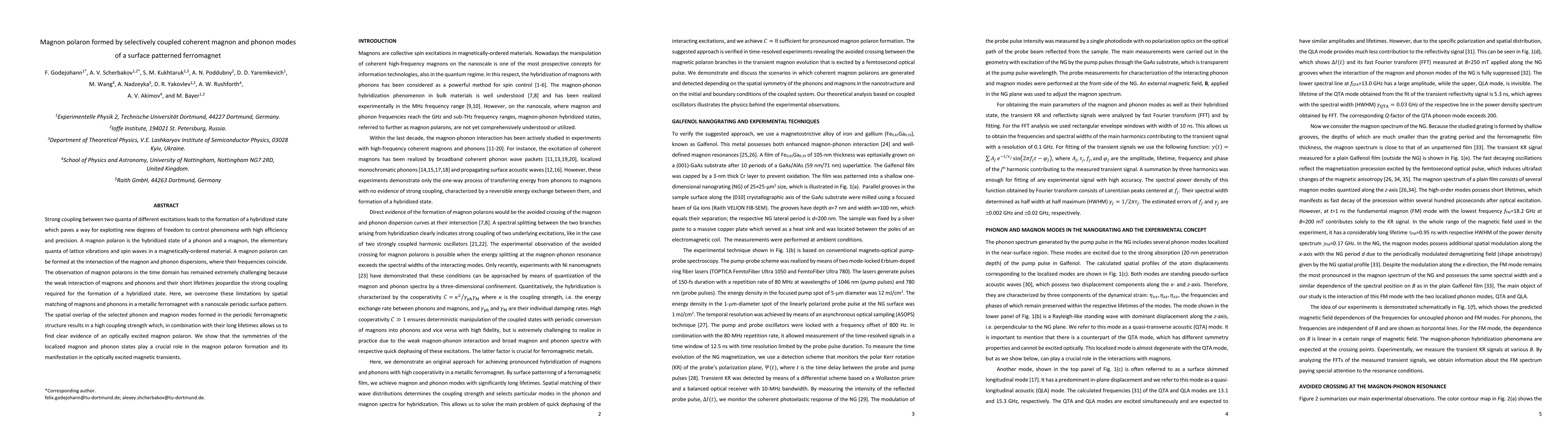 Strong coupling between two quanta of different excitations leads to the formation of a hybridized state which paves a way for exploiting new degrees of freedom to control phenomena with high efficiency and precision. A magnon polaron is the hybridized state of a phonon and a magnon, the elementary quanta of lattice vibrations and spin waves in a magnetically-ordered material. A magnon polaron can be formed at the intersection of the magnon and phonon dispersions, where their frequencies coincide. The observation of magnon polarons in the time domain has remained extremely challenging because the weak interaction of magnons and phonons and their short lifetimes jeopardize the strong coupling required for the formation of a hybridized state. Here, we overcome these limitations by spatial matching of magnons and phonons in a metallic ferromagnet with a nanoscale periodic surface pattern. The spatial overlap of the selected phonon and magnon modes formed in the periodic ferromagnetic structure results in a high coupling strength which, in combination with their long lifetimes allows us to find clear evidence of an optically excited magnon polaron. We show that the symmetries of the localized magnon and phonon states play a crucial role in the magnon polaron formation and its manifestation in the optically excited magnetic transients.