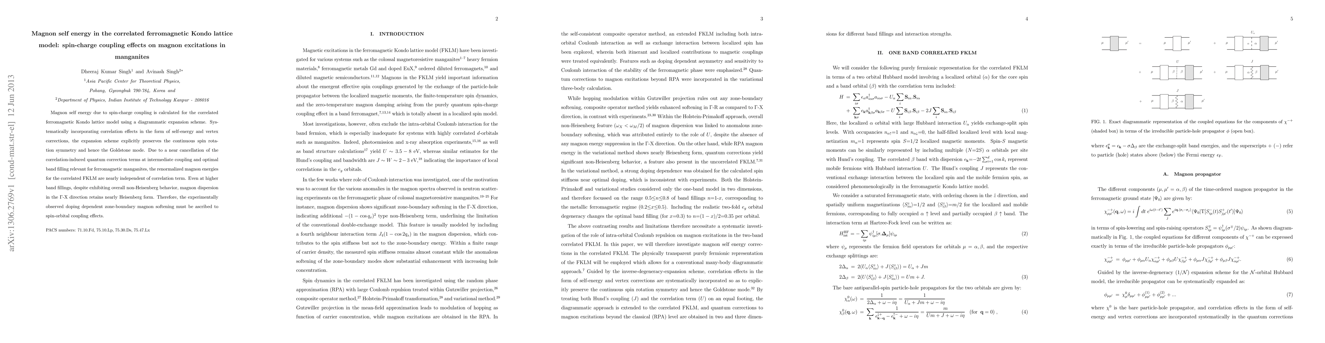 This paper calculates magnon self-energy in a correlated ferromagnetic Kondo lattice model, revealing that spin-charge coupling effects lead to a near cancellation of quantum correction terms, resulting in magnon energies largely unaffected by correlation terms. The study concludes that observed doping-dependent magnon softening in manganites is due to spin-orbital coupling rather than intrinsic correlation effects.
