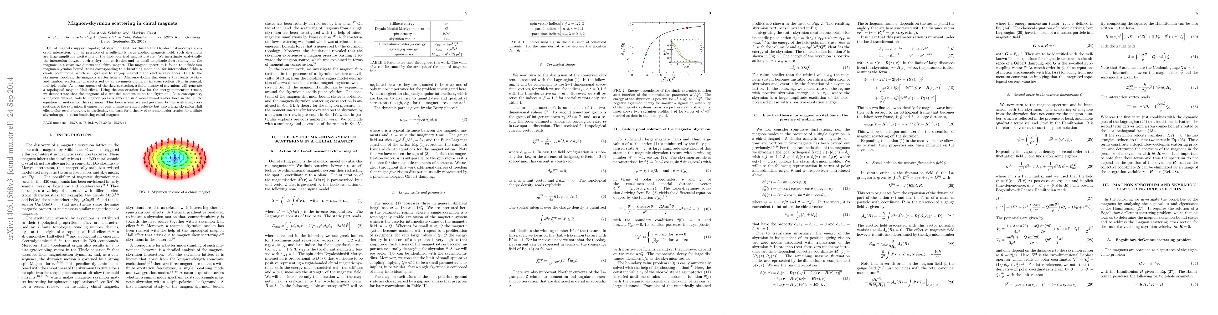 Chiral magnets support topological skyrmion textures due to the Dzyaloshinskii-Moriya spin-orbit interaction. In the presence of a sufficiently large applied magnetic field, such skyrmions are large amplitude excitations of the field-polarized magnetic state. We investigate analytically the interaction between such a skyrmion excitation and its small amplitude fluctuations, i.e., the magnons in a clean two-dimensional chiral magnet. The magnon spectrum is found to include two magnon-skyrmion bound states corresponding to a breathing mode and, for intermediate fields, a quadrupolar mode, which will give rise to subgap magnetic and electric resonances. Due to the skyrmion topology, the magnons scatter from a Aharonov-Bohm flux density that leads to skew and rainbow scattering, characterized by an asymmetric differential cross section with, in general, multiple peaks. As a consequence of the skew scattering, a finite density of skyrmions will generate a topological magnon Hall effect. Using the conservation law for the energy-momentum tensor, we demonstrate that the magnons also transfer momentum to the skyrmion. As a consequence, a magnon current leads to magnon pressure reflected in a momentum-transfer force in the Thiele equation of motion for the skyrmion. This force is reactive and governed by the scattering cross sections of the skyrmion; it causes not only a finite skyrmion velocity but also a large skyrmion Hall effect. Our results provide, in particular, the basis for a theory of skyrmion caloritronics for a dilute skyrmion gas in clean insulating chiral magnets.
