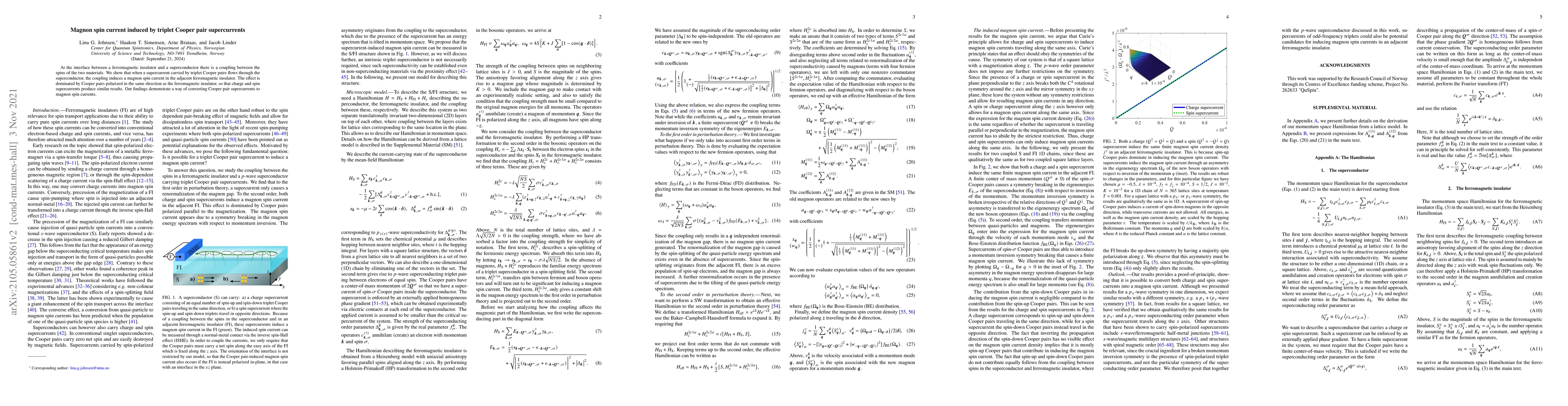Summary: Research reveals a coupling at the interface of a ferromagnetic insulator and a superconductor that induces a magnon spin current when triplet Cooper pair supercurrents flow. The effect is most pronounced for Cooper pairs aligned with the ferromagnetic insulator, showcasing a method to convert Cooper pair supercurrents into magnon spin currents.