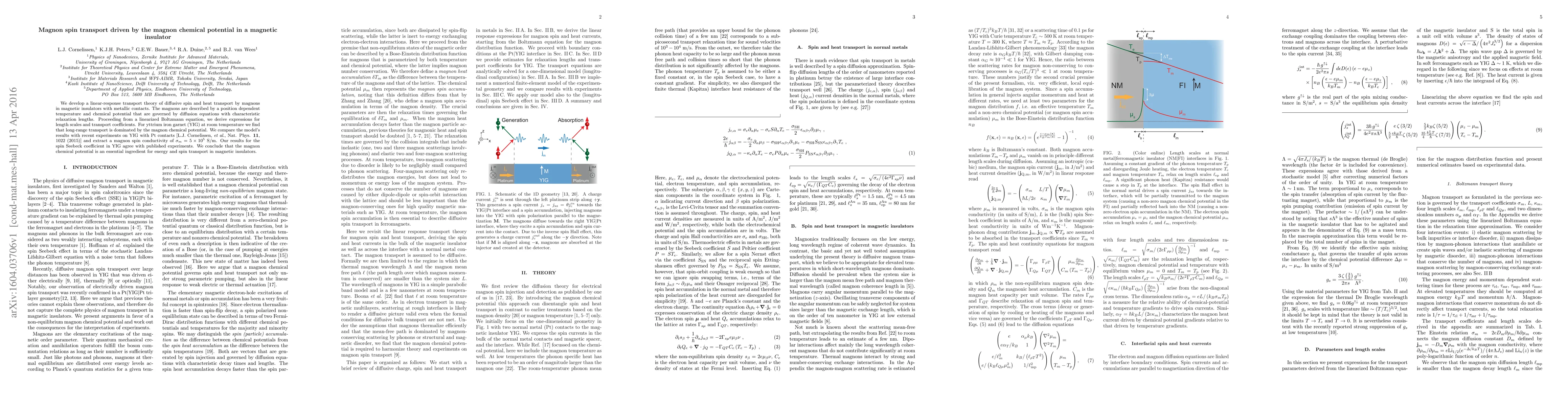 This paper develops a transport theory for magnons in magnetic insulators, showing that magnon chemical potential significantly influences long-range spin transport. The model's predictions for YIG, including magnon spin conductivity and spin Seebeck coefficient, align with experimental data, underscoring the importance of the magnon chemical potential in spin and heat transport.