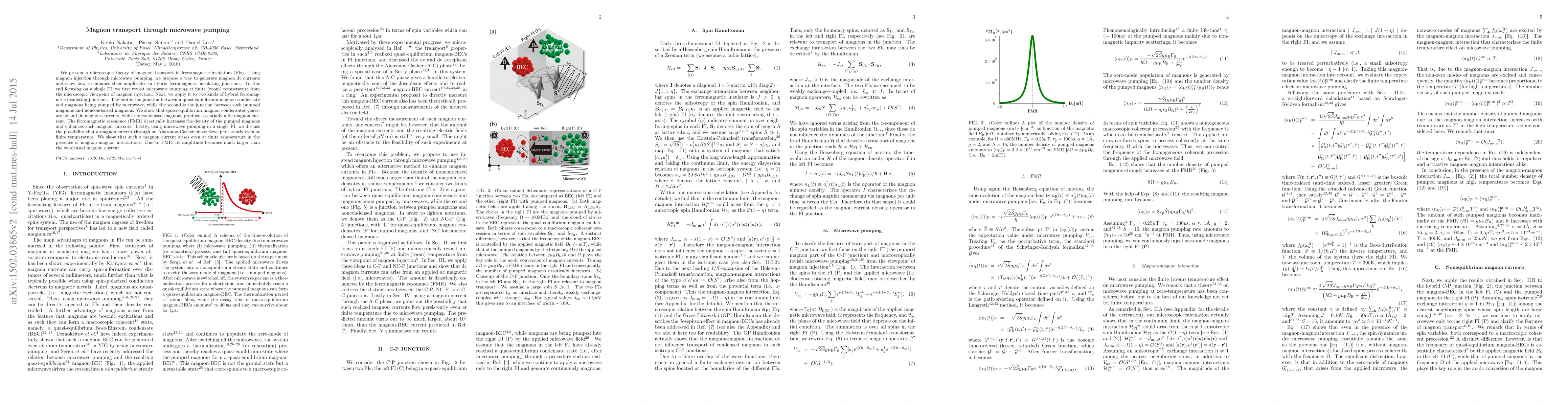 This paper develops a microscopic theory for magnon transport in ferromagnetic insulators, demonstrating how microwave pumping can generate and enhance magnon dc currents in hybrid junctions. It shows that ferromagnetic resonance significantly boosts magnon currents and discusses the potential for persistent magnon currents through an Aharonov-Casher phase at finite temperatures.