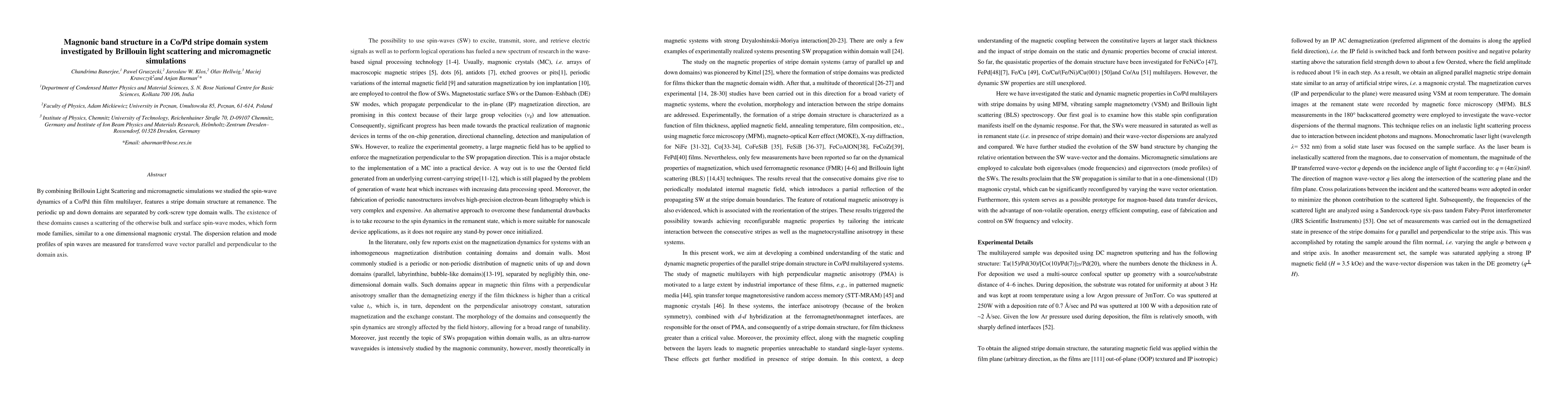 This study combines Brillouin light scattering and micromagnetic simulations to investigate spin-wave dynamics in a Co/Pd stripe domain system. The periodic stripe domains create magnonic band structures akin to a one-dimensional magnonic crystal, scattering spin waves into distinct mode families.
