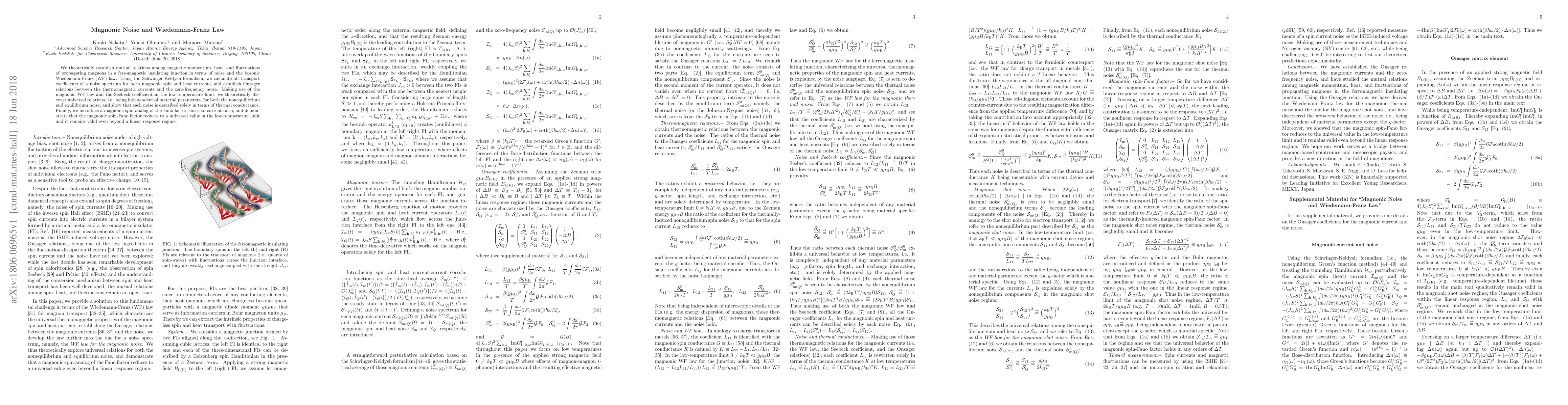 This paper theoretically explores the relationships between magnetic momentum, heat, and magnon fluctuations in ferromagnetic insulating junctions, establishing universal relations via the bosonic Wiedemann-Franz law and demonstrating the validity of a magnonic spin-analog of the Fano factor in low-temperature limits.