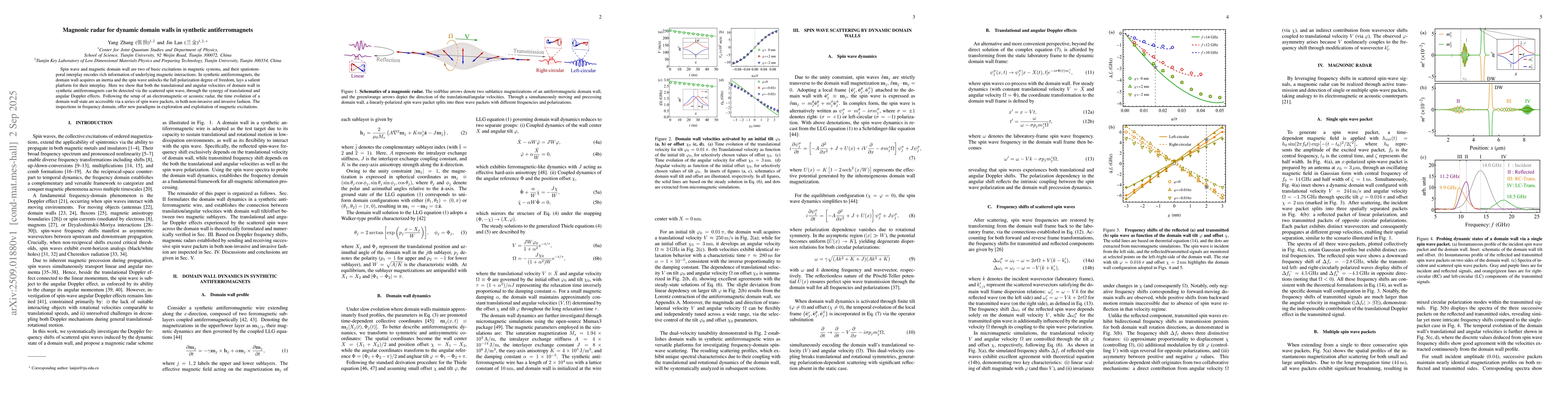 Spin wave and magnetic domain wall are two of basic excitations in magnetic systems, and their spatiotemporal interplay encodes rich information of underlying magnetic interactions. In synthetic antiferromagnets, the domain wall acquires an inertia and the spin wave unlocks the full polarization degree of freedom, lays a salient platform for their interplay. Here we show that both the translational and angular velocities of domain wall in synthetic antiferromagnets can be detected via the scattered spin wave, through the synergy of translational and angular Doppler effects. Following the setup of an electromagnetic or acoustic radar, the time evolution of a domain wall state are accessible via a series of spin wave packets, in both non-invasive and invasive fashion. The inspections in frequency domain, offer new paradigms in exploration and exploitation of magnetic excitations.