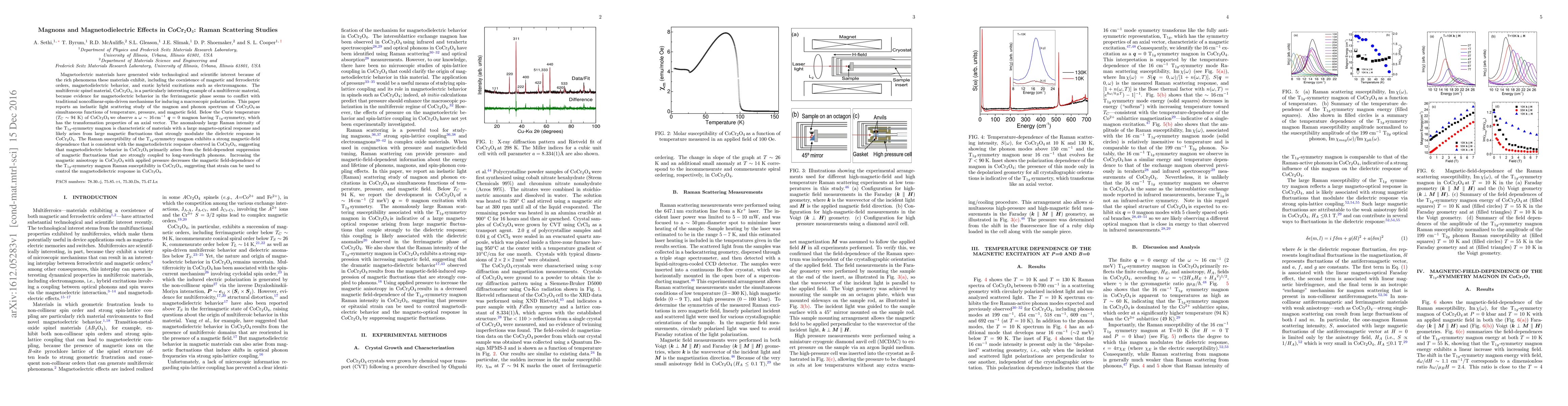 Magnetoelectric materials have generated wide technological and scientific interest because of the rich phenomena these materials exhibit, including the coexistence of magnetic and ferroelectric orders, magnetodielectric behavior, and exotic hybrid excitations such as electromagnons. The multiferroic spinel material, CoCr$_2$O$_4$, is a particularly interesting example of a multiferroic material, because evidence for magnetoelectric behavior in the ferrimagnetic phase seems to conflict with traditional noncollinear-spin-driven mechanisms for inducing a macroscopic polarization. This paper reports an inelastic light scattering study of the magnon and phonon spectrum of CoCr$_2$O$_4$ as simultaneous functions of temperature, pressure, and magnetic field. Below the Curie temperature ($T_C \sim 94$ K) of CoCr$_2$O$_4$ we observe a $\omega \sim 16 \,\text{cm}^{-1}$ $\boldsymbol q=0$ magnon having T$_{1g}$-symmetry, which has the transformation properties of an axial vector. The anomalously large Raman intensity of the T$_{1g}$-symmetry magnon is characteristic of materials with a large magneto-optical response and likely arises from large magnetic fluctuations that strongly modulate the dielectric response in CoCr$_2$O$_4$. The Raman susceptibility of the T$_{1g}$-symmetry magnon exhibits a strong magnetic-field dependence that is consistent with the magnetodielectric response observed in CoCr$_2$O$_4$, suggesting that magnetodielectric behavior in CoCr$_2$O$_4$ primarily arises from the field-dependent suppression of magnetic fluctuations that are strongly coupled to long-wavelength phonons. Increasing the magnetic anisotropy in CoCr$_2$O$_4$ with applied pressure decreases the magnetic field-dependence of the T$_{1g}$-symmetry magnon Raman susceptibility in CoCr$_2$O$_4$, suggesting that strain can be used to control the magnetodielectric response in CoCr$_2$O$_4$.