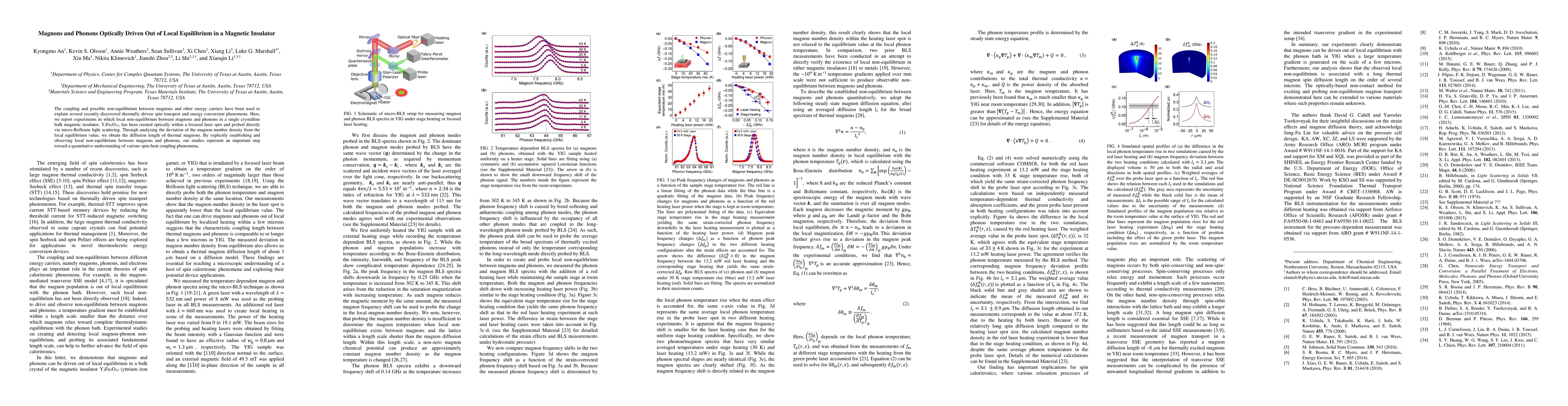 This paper reports on experiments creating local non-equilibrium between magnons and phonons in a magnetic insulator using optical methods, and directly probes these excitations using micro-Brillouin light scattering. The study provides insights into the magnon diffusion length and contributes to understanding spin-heat coupling phenomena.