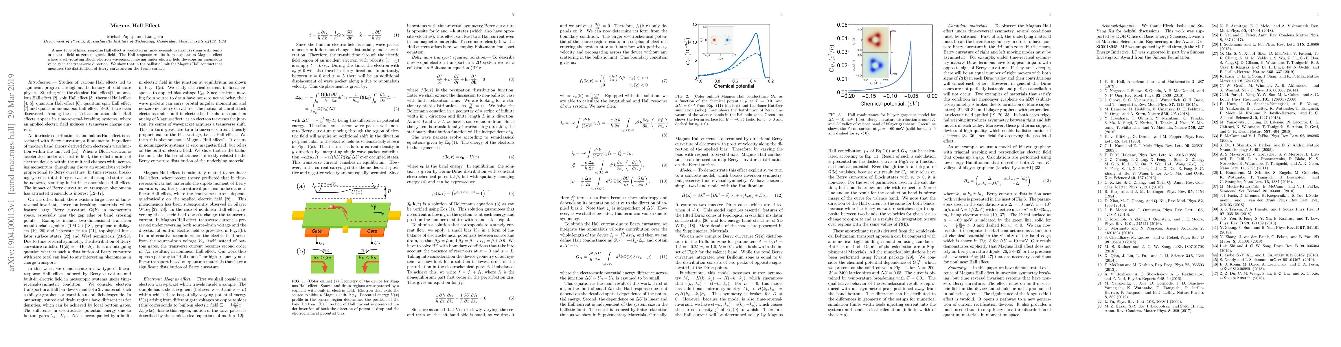 Summary: The research predicts a new linear response Hall effect in time-reversal-invariant systems, driven by a quantum Magnus effect. This effect manifests as an anomalous transverse velocity in self-rotating Bloch electron wavepackets under an electric field, with the Magnus Hall conductance in the ballistic limit quantifying the distribution of Berry curvature on the Fermi surface.