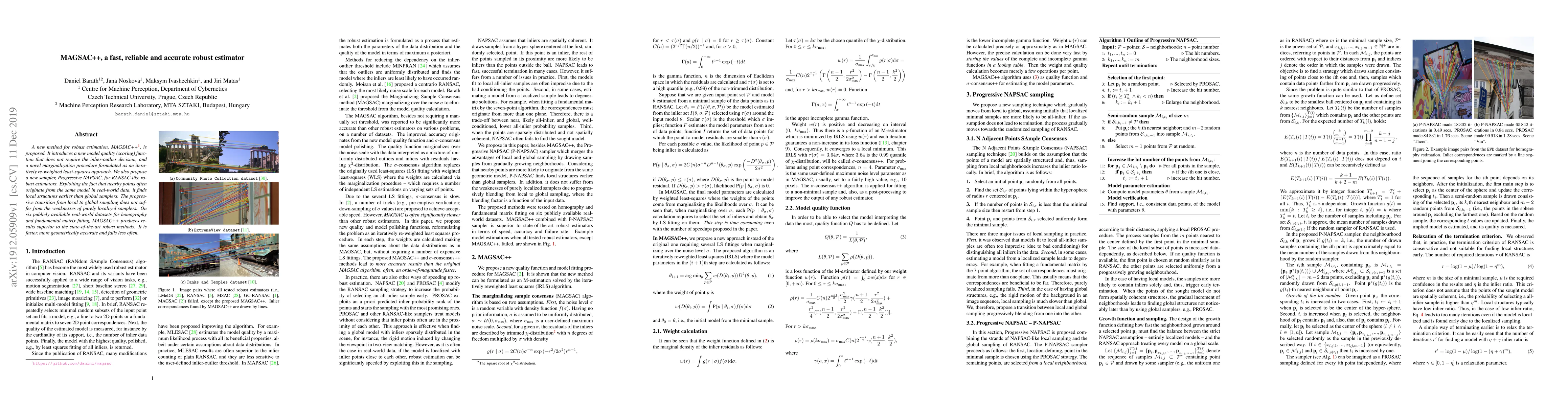 A new method for robust estimation, MAGSAC++, is proposed. It introduces a new model quality (scoring) function that does not require the inlier-outlier decision, and a novel marginalization procedure formulated as an iteratively re-weighted least-squares approach. We also propose a new sampler, Progressive NAPSAC, for RANSAC-like robust estimators. Exploiting the fact that nearby points often originate from the same model in real-world data, it finds local structures earlier than global samplers. The progressive transition from local to global sampling does not suffer from the weaknesses of purely localized samplers. On six publicly available real-world datasets for homography and fundamental matrix fitting, MAGSAC++ produces results superior to state-of-the-art robust methods. It is faster, more geometrically accurate and fails less often.