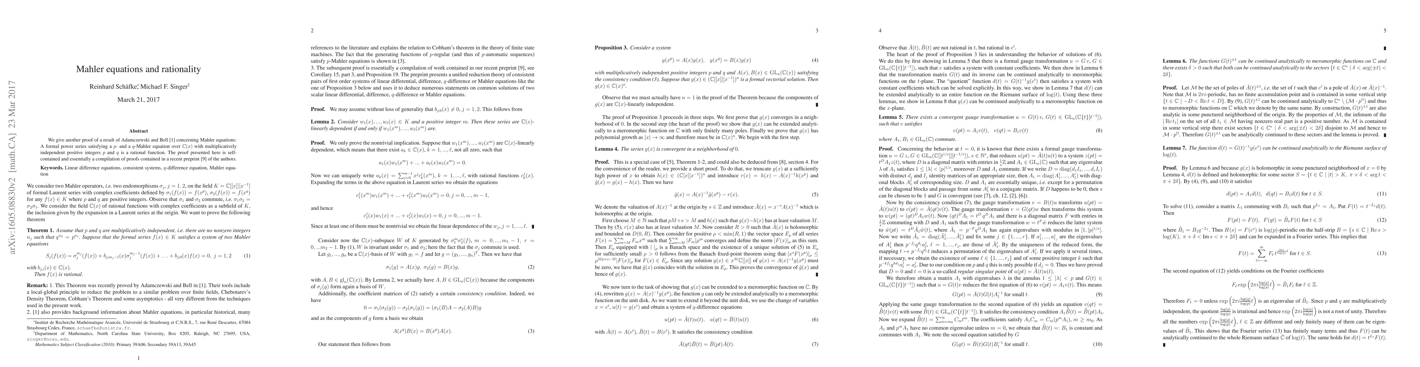 Researchers prove that a formal power series satisfying specific equations over the complex numbers is always a rational function, with implications for number theory and algebraic geometry.