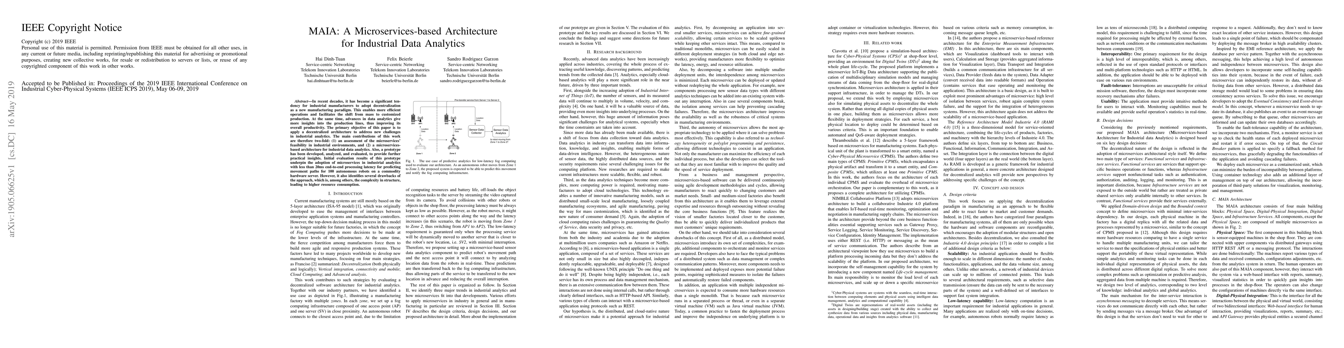 This paper explores the feasibility of microservices architecture in industrial data analytics, presenting a prototype that achieves less than 20ms latency for predicting robot paths. While the approach shows promise, it also highlights challenges such as increased complexity and resource consumption.
