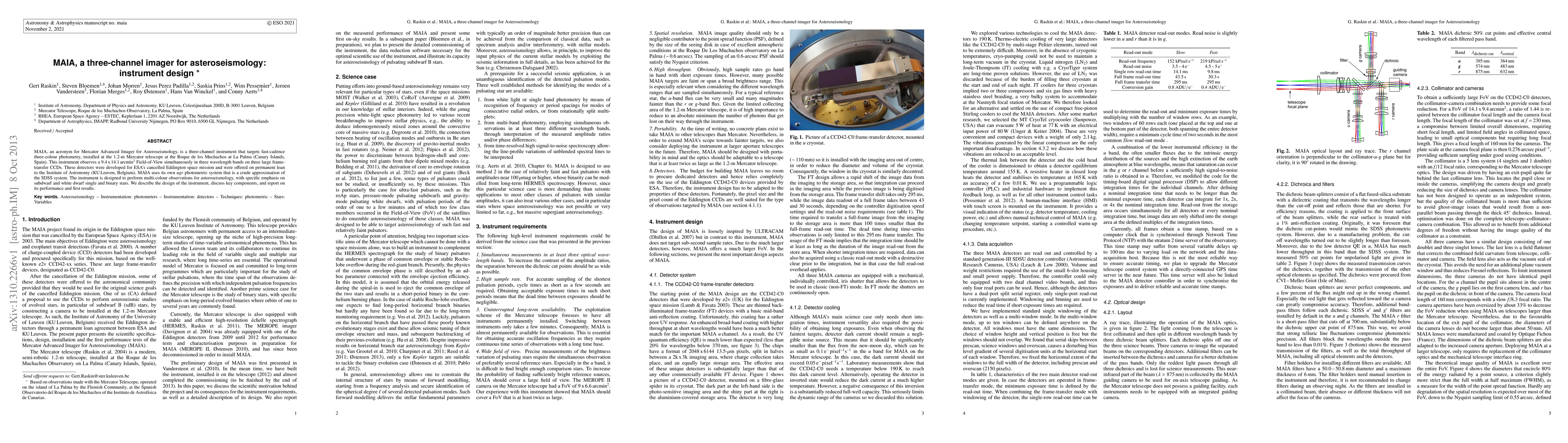 The MAIA instrument, a three-channel imager for asteroseismology, has been designed to perform fast-cadence three-colour photometry at the 1.2-m Mercator telescope, focusing on subdwarf and white dwarf stars.