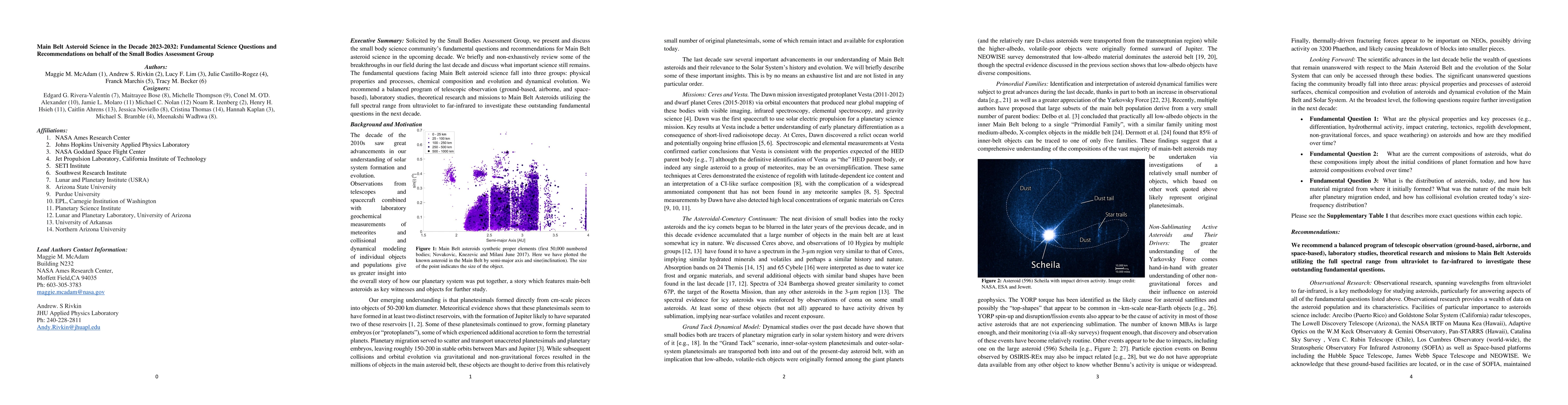 Solicited by the Small Bodies Assessment Group, we recommend a balanced program of telescopic observation (ground-based, airborne, and space-based), laboratory studies, theoretical research and missions to Main Belt Asteroids utilizing the full spectral range from ultraviolet to far-infrared to investigate these outstanding fundamental questions in the next decade.