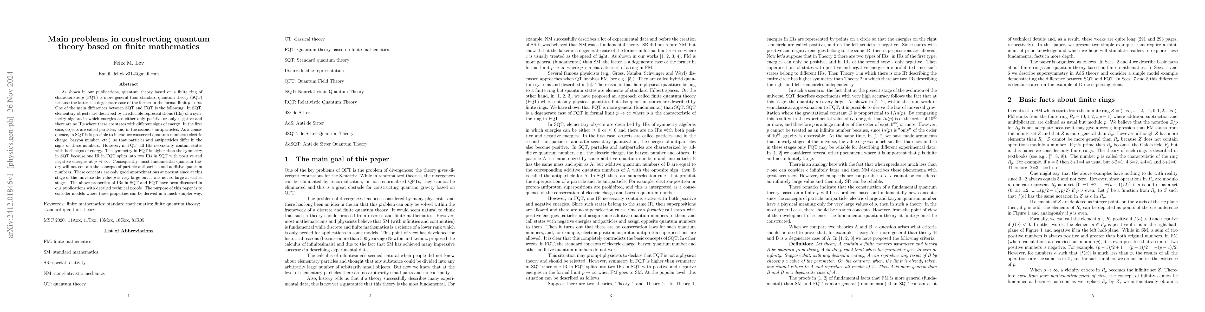 This paper explores the fundamental differences between standard quantum theory (SQT) and quantum theory based on finite mathematics (FQT), highlighting that FQT, unlike SQT, does not distinguish between particles and antiparticles due to its higher symmetry, which inherently includes states with both positive and negative energies. The paper aims to present simpler models to derive these properties.