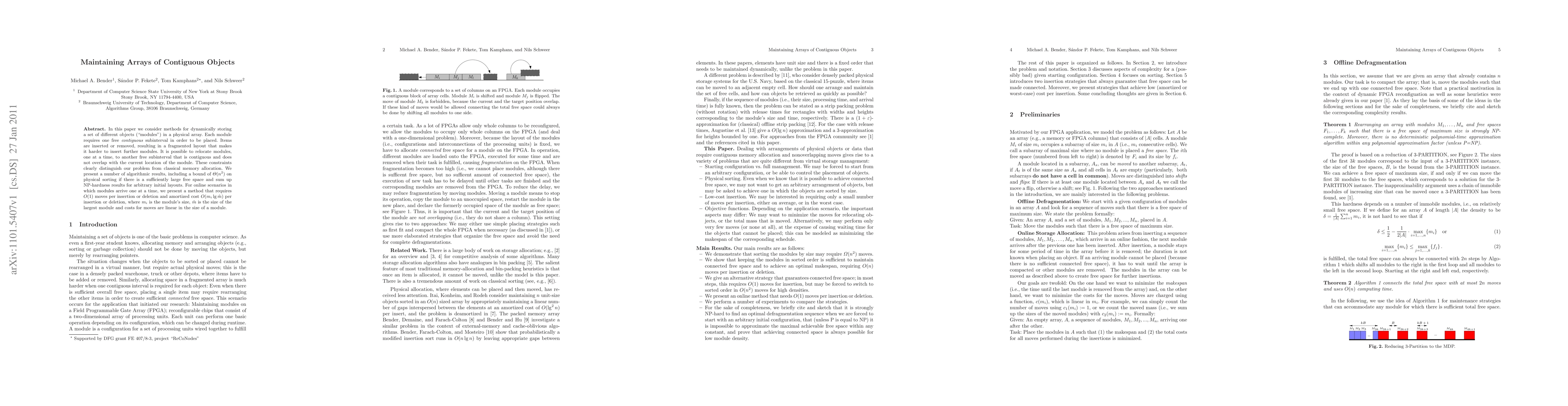 Researchers developed algorithms to efficiently store and relocate modules in a physical array with contiguous free space constraints, achieving O(1) moves per insertion or deletion for online scenarios.