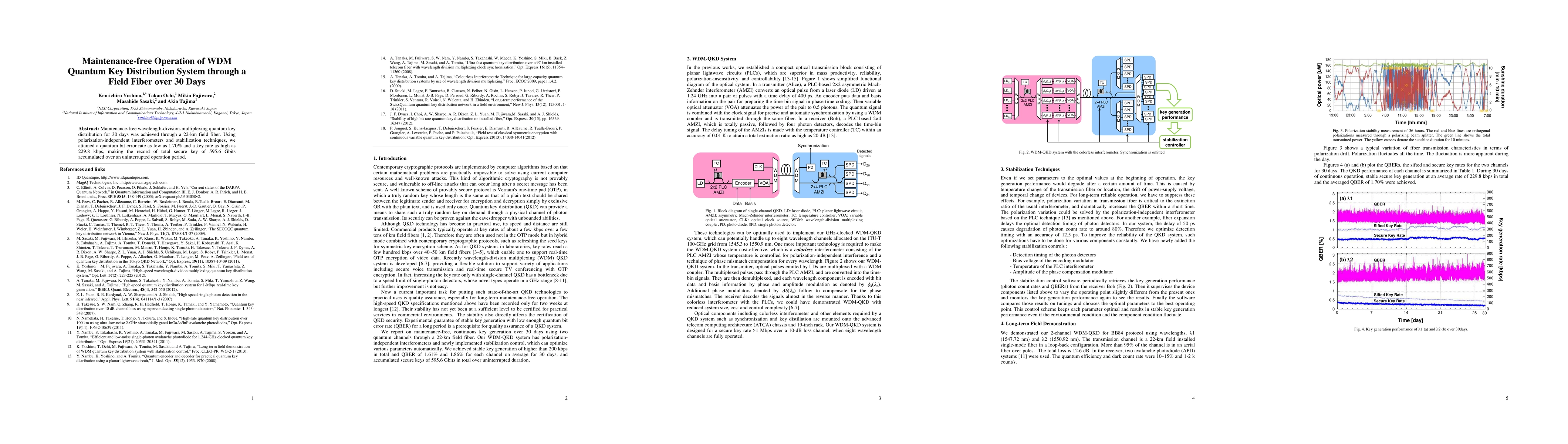 This study demonstrates maintenance-free operation of a WDM quantum key distribution system over 30 days using a 22-km field fiber, achieving a low quantum bit error rate of 1.70% and a high key rate of 229.8 kbps, resulting in a total secure key of 595.6 Gbits.
