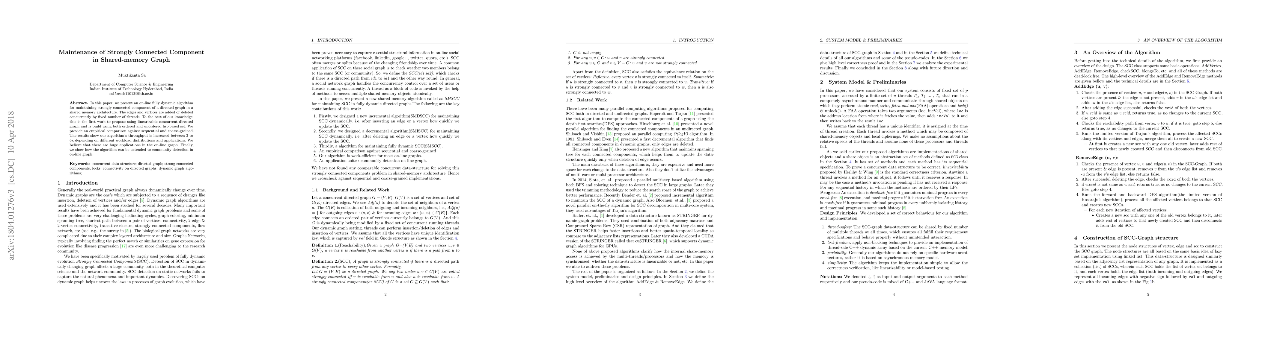 This paper introduces an on-line dynamic algorithm for maintaining strongly connected components in a directed graph within a shared-memory system, supporting concurrent edge and vertex modifications. The algorithm's performance is shown to be 3 to 6 times higher than sequential and coarse-grained methods, highlighting its potential for online graph applications and community detection.