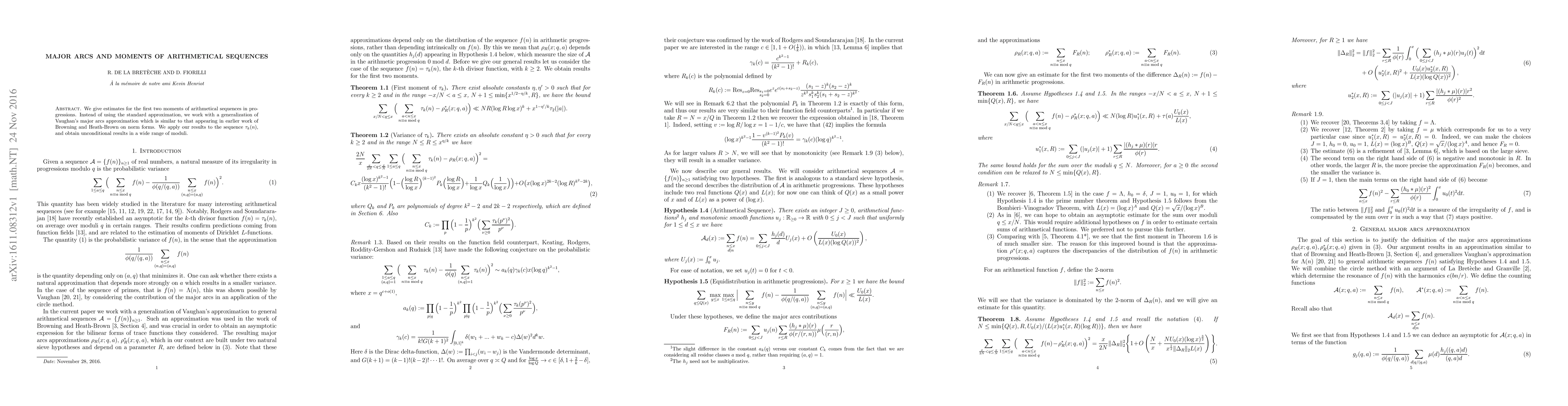 The paper provides refined estimates for the first two moments of arithmetic sequences using a generalized Vaughan's major arcs approximation, achieving unconditional results for the sequence $\tau_k(n)$ across various moduli. This approach differs from standard approximations and draws on previous work by Browning and Heath-Brown on norm forms.
