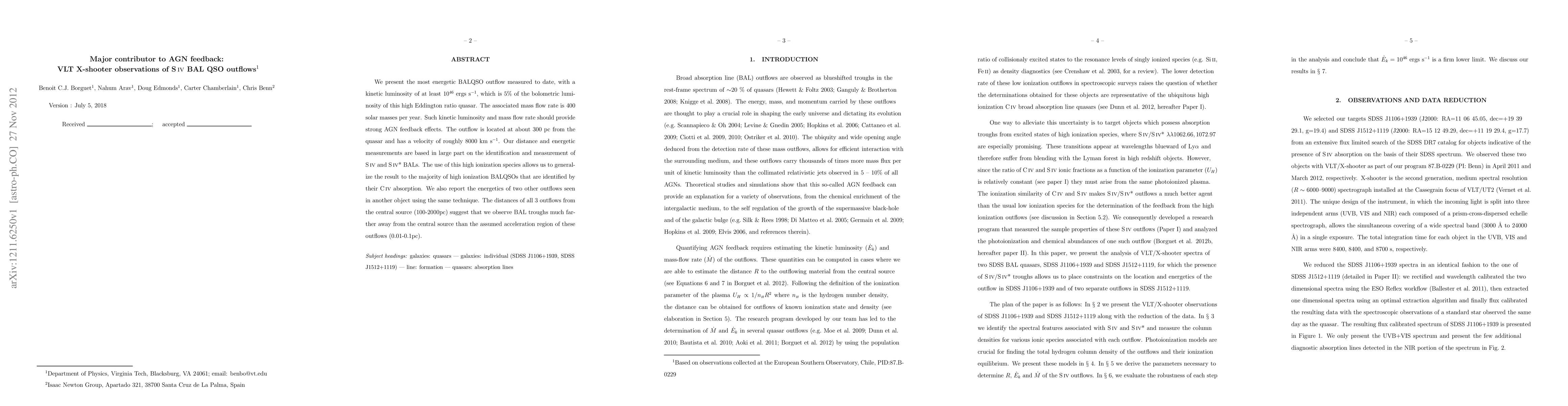 We present the most energetic BALQSO outflow measured to date, with a kinetic luminosity of at least 10^46 ergs/s, which is 5% of the bolometric luminosity of this high Eddington ratio quasar. The associated mass flow rate is 400 solar masses per year. Such kinetic luminosity and mass flow rate should provide strong AGN feedback effects. The outflow is located at about 300 pc from the quasar and has a velocity of roughly 8000 km/s. Our distance and energetic measurements are based in large part on the identification and measurement of SIV and SIV* BALs. The use of this high ionization species allows us to generalize the result to the majority of high ionization BALQSOs that are identified by their CIV absorption. We also report the energetics of two other outflows seen in another object using the same technique. The distances of all 3 outflows from the central source (100-2000pc) suggest that we observe BAL troughs much farther away from the central source than the assumed acceleration region of these outflows (0.01-0.1pc).