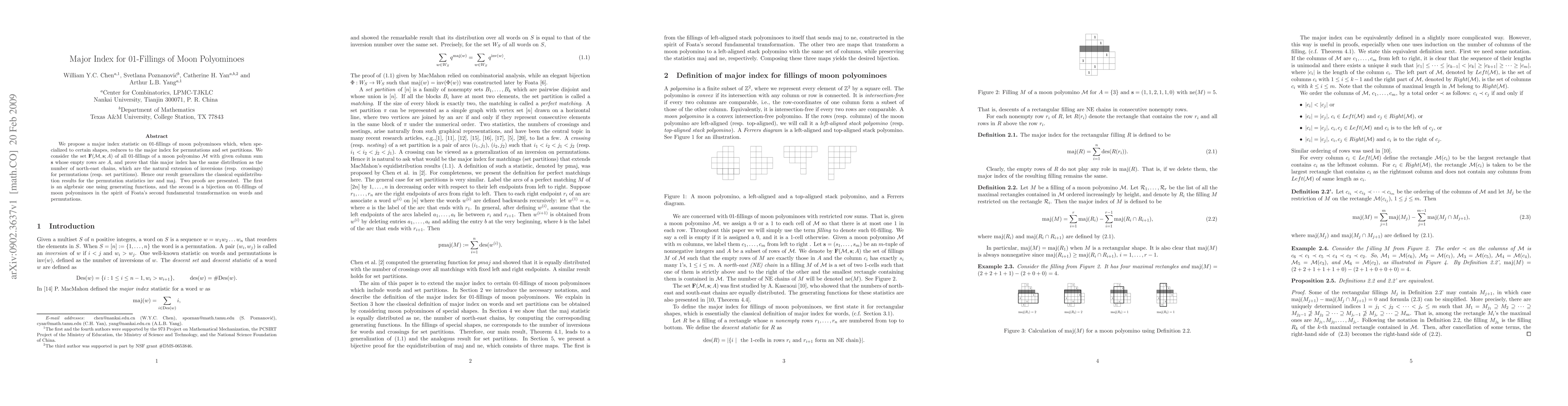 We propose a major index statistic on 01-fillings of moon polyominoes which, when specialized to certain shapes, reduces to the major index for permutations and set partitions. We consider the set F(M, s; A) of all 01-fillings of a moon polyomino M with given column sum s whose empty rows are A, and prove that this major index has the same distribution as the number of north-east chains, which are the natural extension of inversions (resp. crossings) for permutations (resp. set partitions). Hence our result generalizes the classical equidistribution results for the permutation statistics inv and maj. Two proofs are presented. The first is an algebraic one using generating functions, and the second is a bijection on 01-fillings of moon polyominoes in the spirit of Foata's second fundamental transformation on words and permutations.