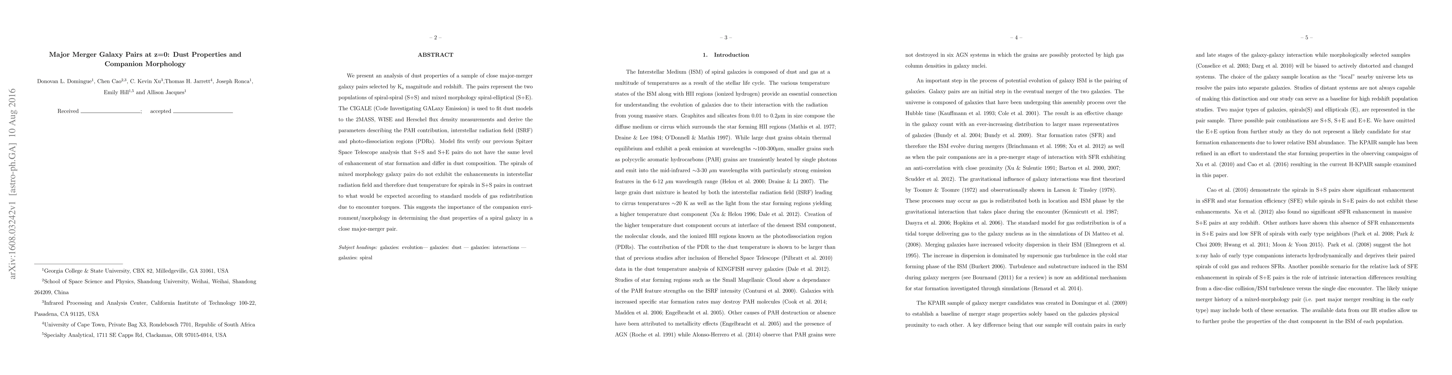 This study analyzes dust properties in major-merger galaxy pairs using CIGALE models, finding differences in star formation and dust composition between spiral-spiral and spiral-elliptical pairs. The results suggest that the companion galaxy's morphology significantly influences the dust properties of the spiral galaxy in the pair.