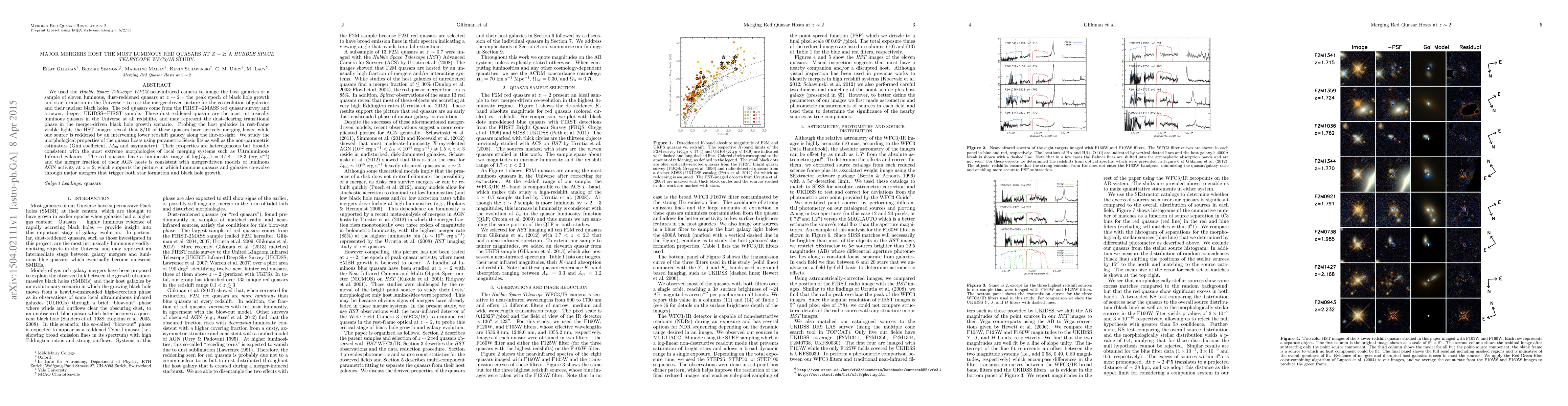 This study uses the Hubble Space Telescope to image the host galaxies of eleven luminous, dust-reddened quasars at z ~ 2, finding that 8 out of 10 quasars have actively merging hosts, supporting the theory that major mergers drive the co-evolution of galaxies and their central black holes. The quasars exhibit extreme luminosities and morphologies consistent with Ultraluminous Infrared galaxies.