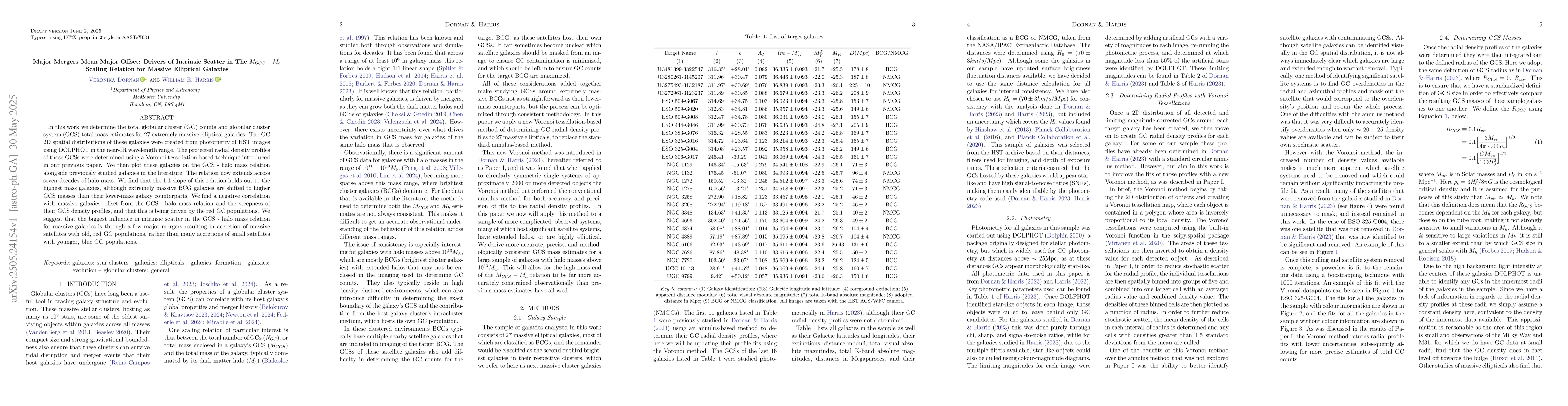 A study of 27 massive elliptical galaxies reveals that major mergers drive intrinsic scatter in the relation between globular cluster system mass and halo mass, with red GC populations contributing to this effect.