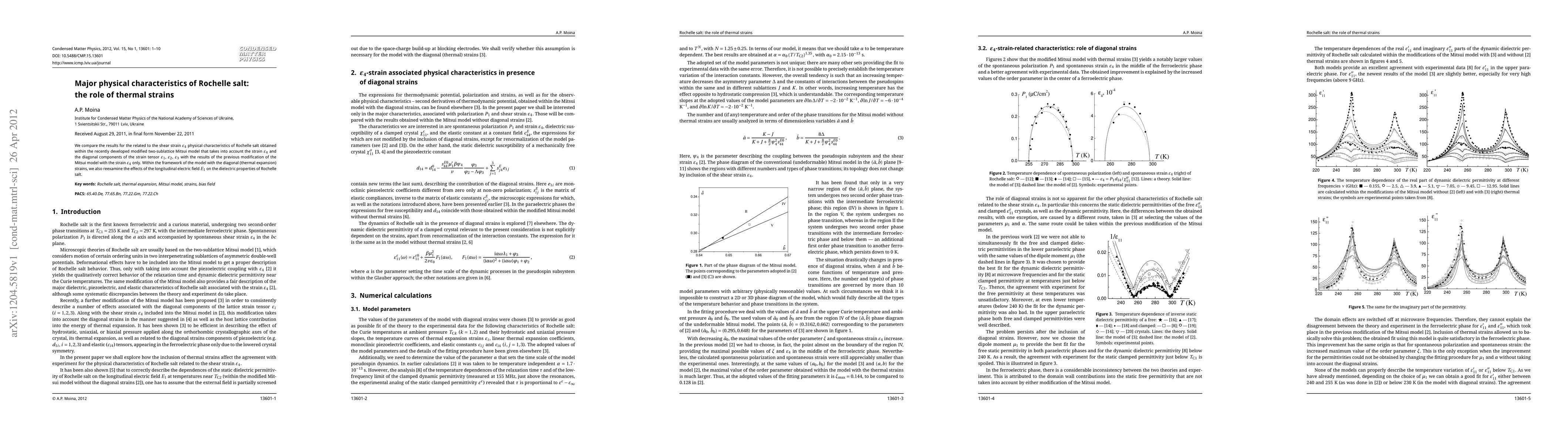 This paper compares the physical characteristics of Rochelle salt derived from a modified Mitsui model considering both shear and diagonal strain components, against results from a previous model using only shear strain. It also examines the impact of a longitudinal electric field on the dielectric properties under thermal strains.