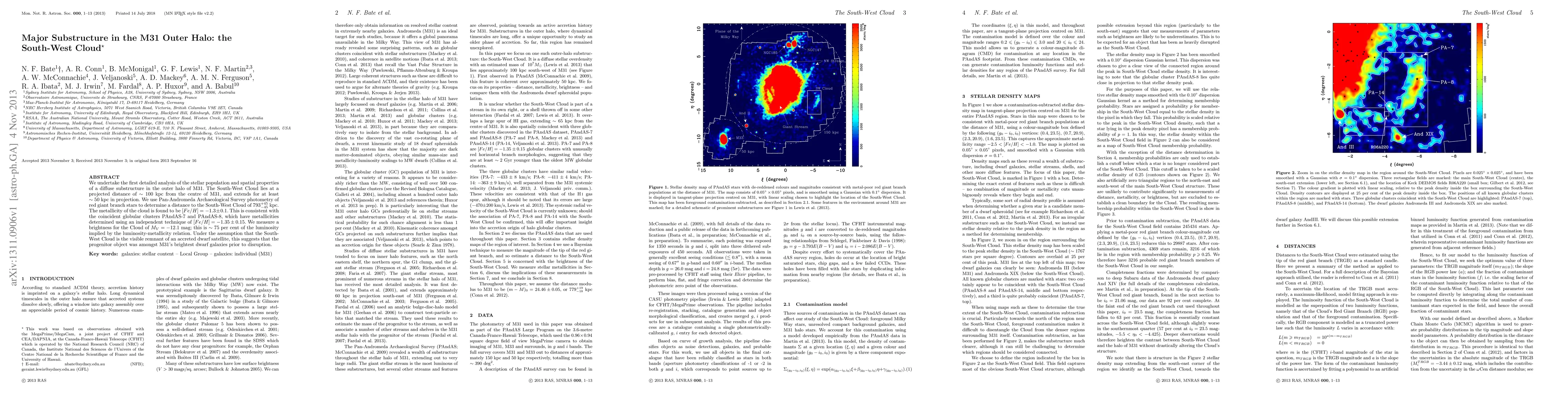 We undertake the first detailed analysis of the stellar population and spatial properties of a diffuse substructure in the outer halo of M31. The South-West Cloud lies at a projected distance of ~100 kpc from the centre of M31, and extends for at least ~50 kpc in projection. We use Pan-Andromeda Archaeological Survey photometry of red giant branch stars to determine a distance to the South-West Cloud of 793 +/- 45 kpc. The metallicity of the cloud is found to be [Fe/H] = -1.3 +/- 0.1. This is consistent with the coincident globular clusters PAndAS-7 and PAndAS-8, which have metallicities determined using an independent technique of [Fe/H] = -1.35 +/- 0.15. We measure a brightness for the Cloud of M_V = -12.1 mag; this is ~75 per cent of the luminosity implied by the luminosity-metallicity relation. Under the assumption that the South-West Cloud is the visible remnant of an accreted dwarf satellite, this suggests that the progenitor object was amongst M31's brightest dwarf galaxies prior to disruption.
