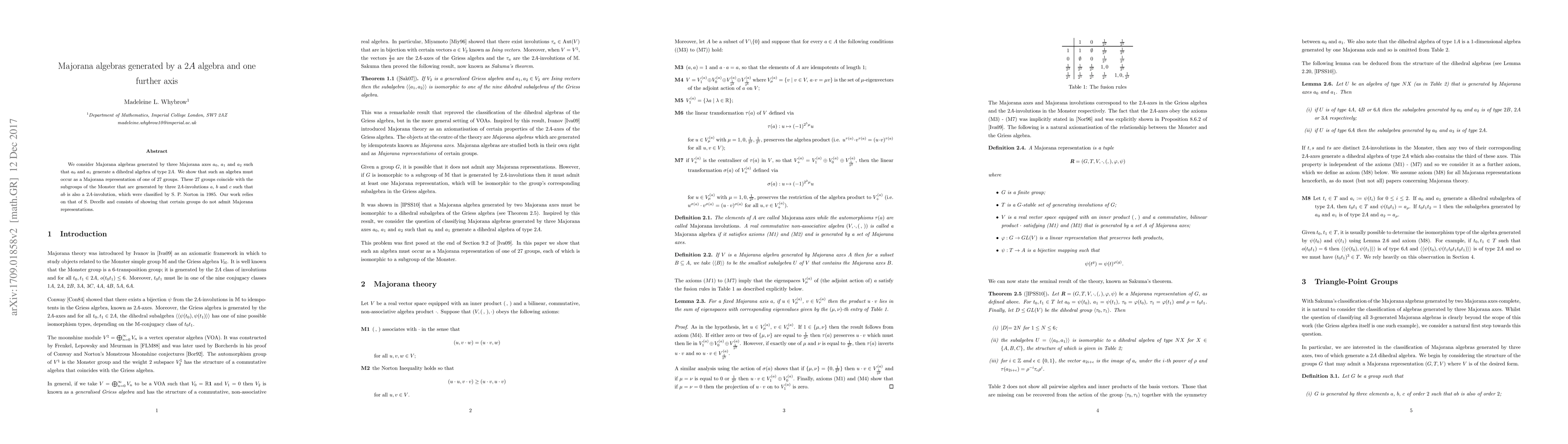 We consider Majorana algebras generated by three Majorana axes $a_0$, $a_1$ and $a_2$ such that $a_0$ and $a_1$ generate a dihedral algebra of type 2A. We show that such an algebra must occur as a Majorana representation of one of 27 groups. These 27 groups coincide with the subgroups of the Monster which are generated by three 2A-involutions $a$, $b$ and $c$ such that $ab$ is also a 2A-involution, which were classified by S. P. Norton in 1985. Our work relies on that of S. Decelle and consists of showing that certain groups do not admit Majorana representations.