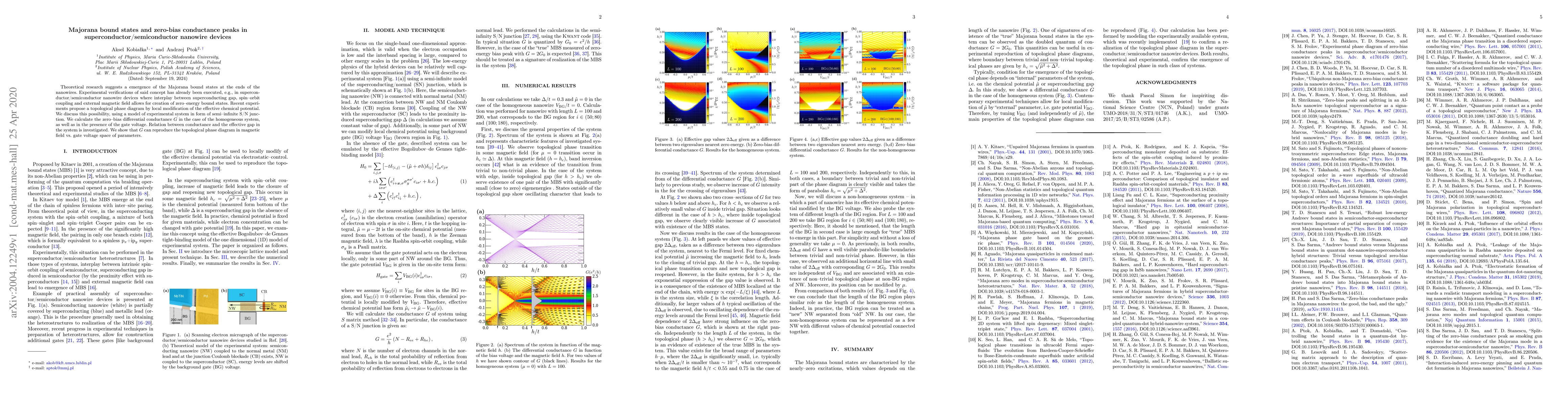 Theoretical research suggests a emergence of the Majorana bound states at the ends of the nanowires. Experimental verifications of said concept has already been executed, e.g., in superconductor/semiconductor nanowire devices where interplay between superconducting gap, spin-orbit coupling and external magnetic field allows for creation of zero-energy bound states. Recent experiments propose a topological phase diagram by local modification of the effective chemical potential. We discuss this possibility, using a model of experimental system in form of semi-infinite S/N junction. We calculate the zero--bias differential conductance $G$ in the case of the homogeneous system, as well as in the presence of the gate voltage. Relation between conductance and the effective gap in the system is investigated. We show that $G$ can reproduce the topological phase diagram in magnetic field vs. gate voltage space of parameters.