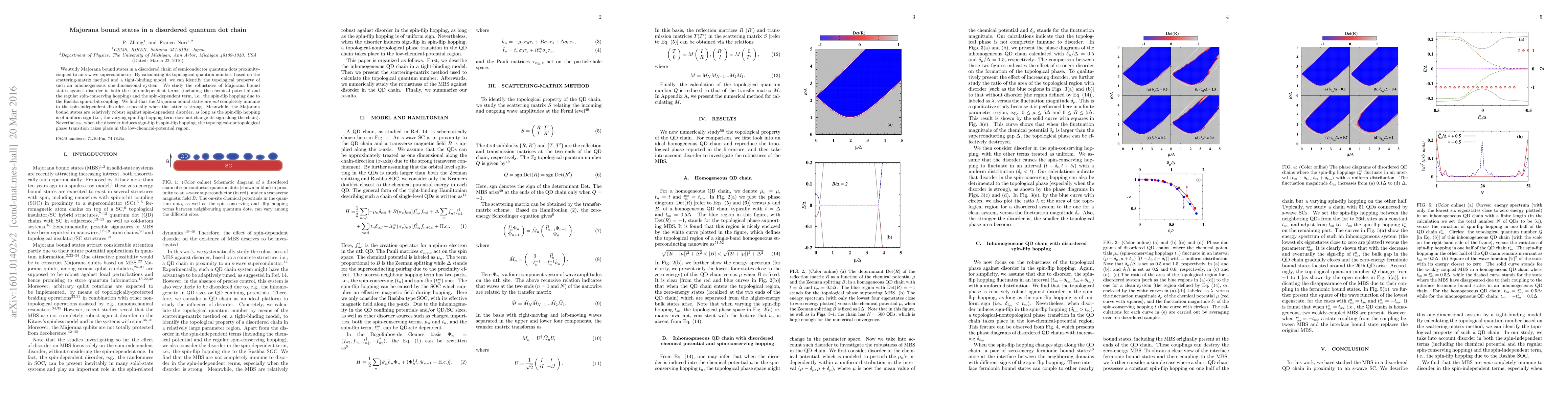 The paper presents a numerical method for calculating the topological quantum number of a disordered quantum dot chain using the scattering-matrix method and a tight-binding model.