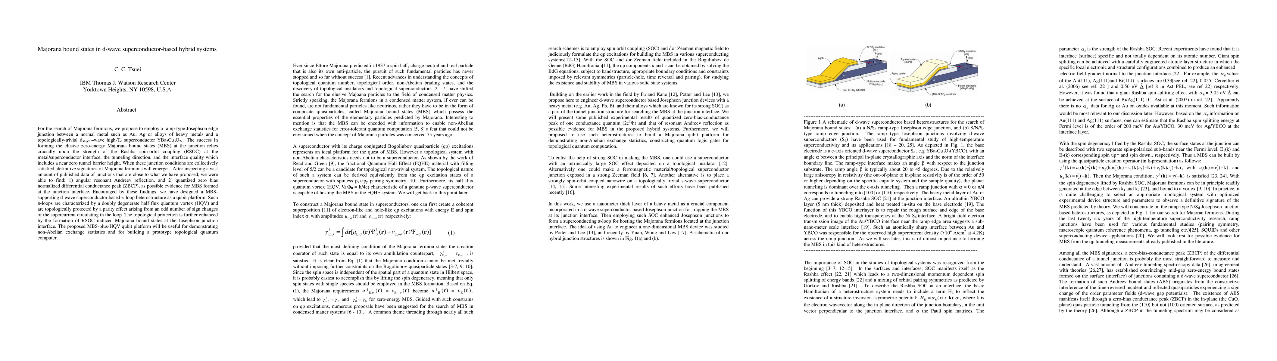 For the search of Majorana fermions, we propose to employ a ramp-type Josephson edge junction between a normal metal such as Au, Ag or alloys of heavy metals and a topologically-trivial dx2-y2 wave high-Tc superconductor YBa2Cu3O7. The success in forming the elusive zero-energy Majorana bound states (MBS) at the junction relies crucially upon the strength of the Rashba spin-orbit coupling (RSOC) at the metal/superconductor interface, the tunneling direction, and the interface quality which includes a near zero tunnel barrier height. When these junction conditions are collectively satisfied, definitive signatures of Majorana fermions will emerge. After inspecting a vast amount of published data of junctions that are close to what we have proposed, we were able to find: 1) angular resonant Andreev reflection, and 2) quantized zero bias normalized differential conductance peak (ZBCP), as possible evidence for MBS formed at the junction interface. Encouraged by these findings, we have designed a MBS-supporting d-wave superconductor based pi-loop heterostructure as a qubit platform. Such pi-loops are characterized by a doubly degenerate half flux quantum vortex (HQV) and are topologically protected by a parity effect arising from an odd number of sign changes of the supercurrent circulating in the loop. The topological protection is further enhanced by the formation of RSOC induced Majorana bound states at the Josephson junction interface. The proposed MBS-plus-HQV qubit platform will be useful for demonstrating non-Abelian exchange statistics and for building a prototype topological quantum computer.