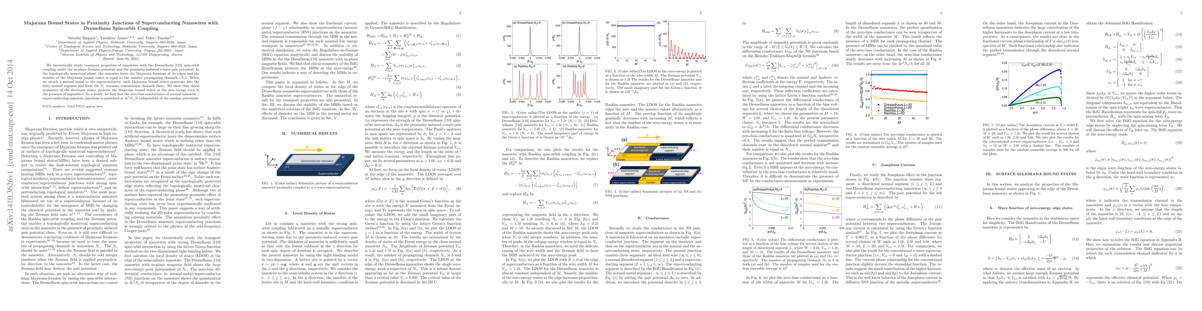 This paper investigates the transport properties of superconducting nanowires with Dresselhaus spin-orbit coupling, revealing the presence of Majorana bound states in topologically nontrivial phases. The study finds that these states are protected by chiral symmetry, leading to quantized zero-bias conductance in junctions with normal metals.