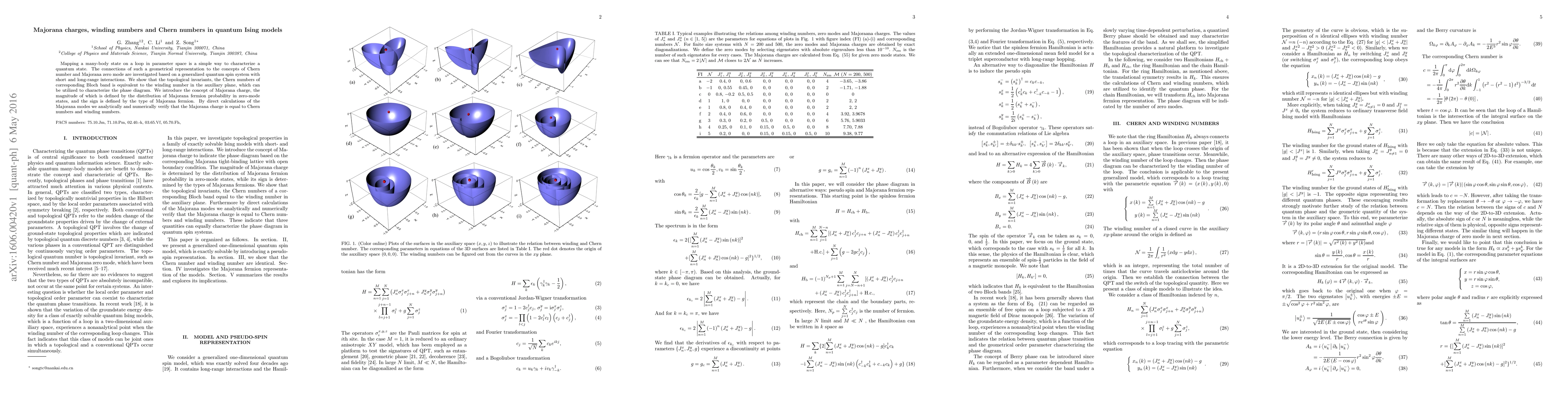 This paper investigates the topological properties of quantum Ising models through the mapping of many-body states on parameter space loops. It establishes a connection between Chern numbers, winding numbers, and Majorana zero modes, showing that these topological invariants characterize the phase diagram and that Majorana charge equals both Chern and winding numbers.