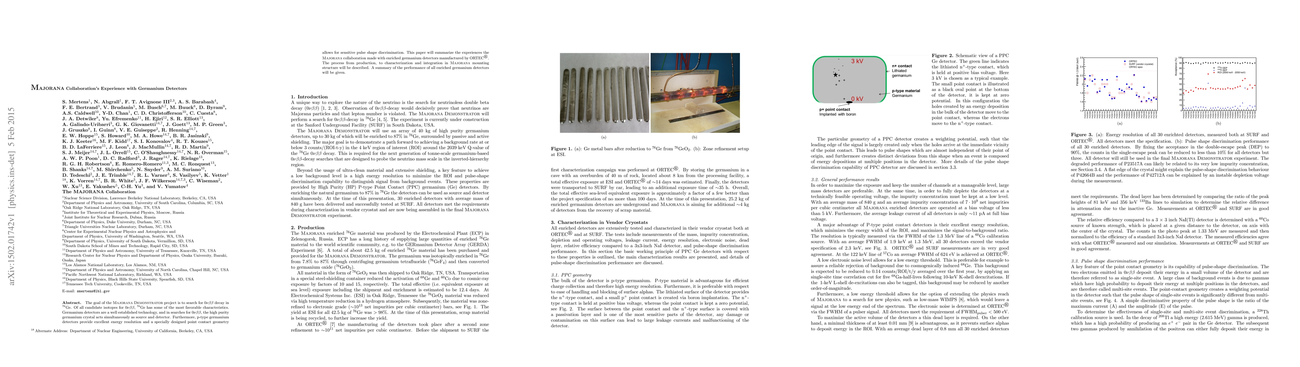 The Majorana collaboration's experience with enriched germanium detectors, used to search for 0νββ decay in 76Ge, highlights the production, characterization, and integration of high-purity germanium crystals into the Majorana demonstrator. The study emphasizes the detectors' excellent energy resolution and pulse shape discrimination capabilities.