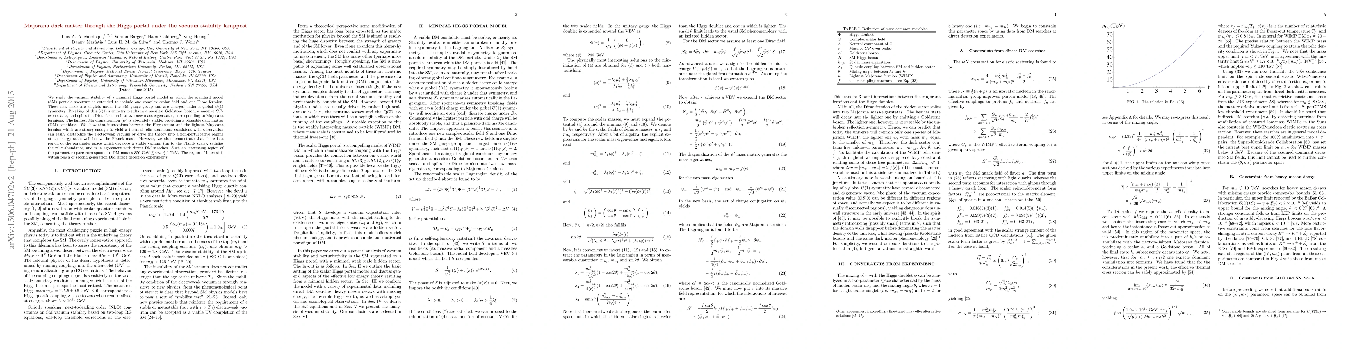 We study the vacuum stability of a minimal Higgs portal model in which the standard model (SM) particle spectrum is extended to include one complex scalar field and one Dirac fermion. These new fields are singlets under the SM gauge group and are charged under a global U(1) symmetry. Breaking of this U(1) symmetry results in a massless Goldstone boson, a massive CP-even scalar, and splits the Dirac fermion into two new mass-eigenstates, corresponding to Majorana fermions. The lightest Majorana fermion (w) is absolutely stable, providing a plausible dark matter (DM) candidate. We show that interactions between the Higgs sector and the lightest Majorana fermion which are strong enough to yield a thermal relic abundance consistent with observation can easily destabilize the electroweak vacuum or drive the theory into a non-perturbative regime at an energy scale well below the Planck mass. However, we also demonstrate that there is a region of the parameter space which develops a stable vacuum (up to the Planck scale), satisfies the relic abundance, and is in agreement with direct DM searches. Such an interesting region of the parameter space corresponds to DM masses 350 GeV \alt m_w \alt 1 TeV. The region of interest is within reach of second generation DM direct detection experiments.