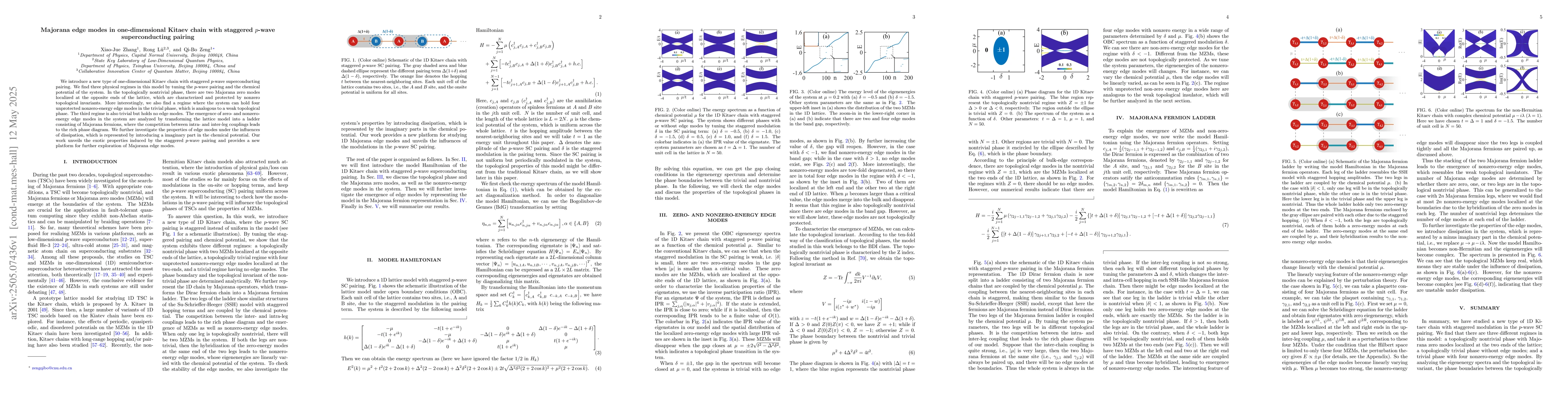 This work unveils exotic properties induced by staggered p-wave pairing, providing a new platform for exploring Majorana edge modes and potentially impacting topological quantum computing.