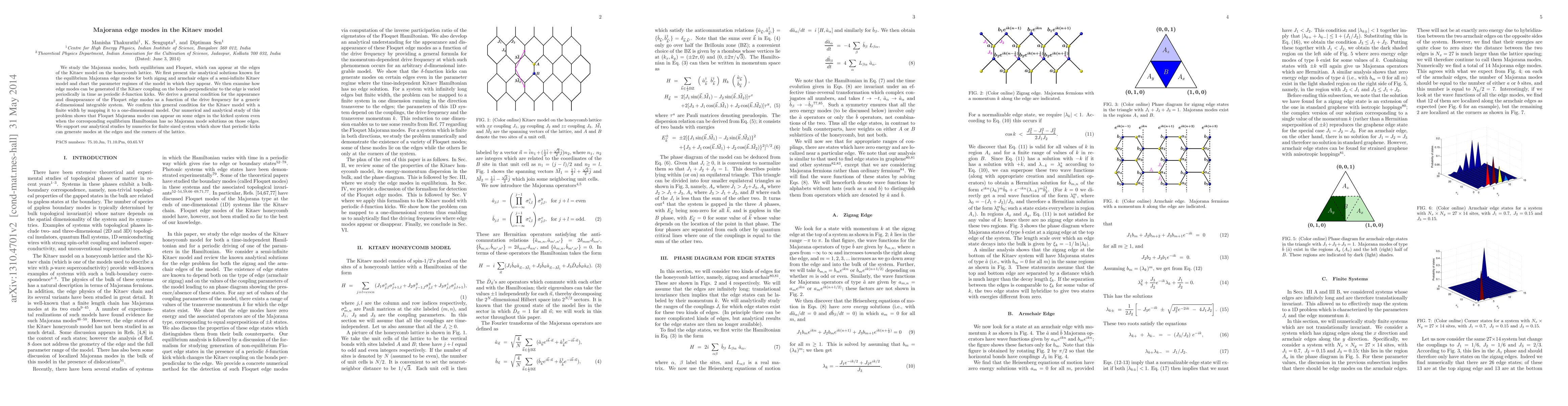 This paper investigates Majorana edge modes in the Kitaev model, analyzing both equilibrium and Floquet modes. It presents analytical solutions for equilibrium modes and derives conditions for the appearance of Floquet edge modes under periodic driving, confirming these conditions numerically for finite systems.